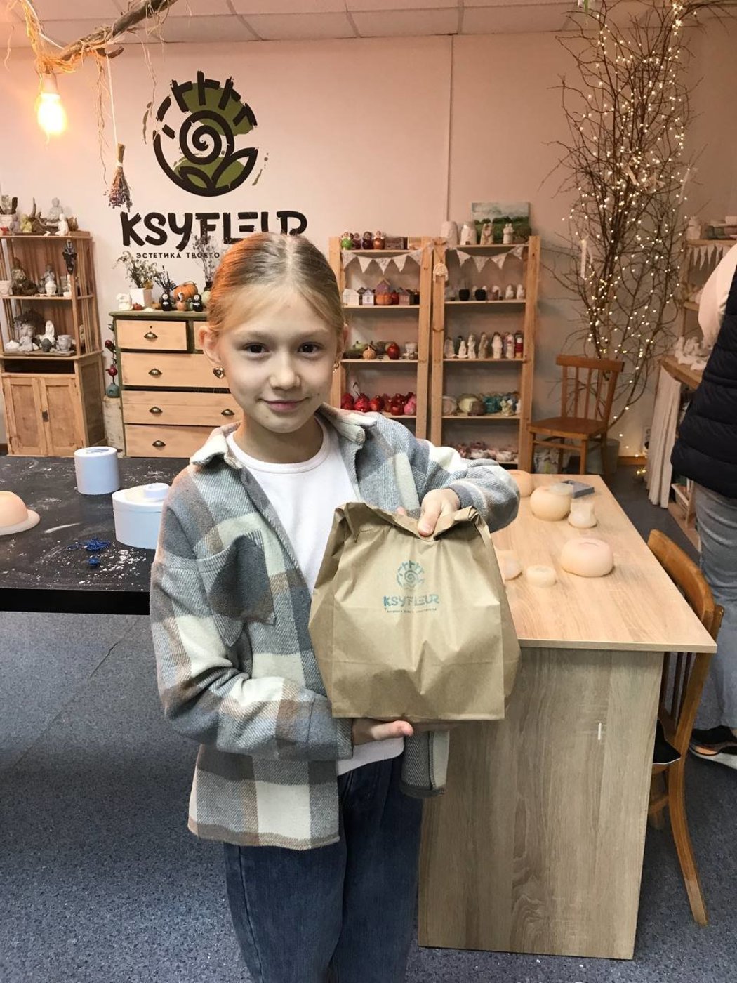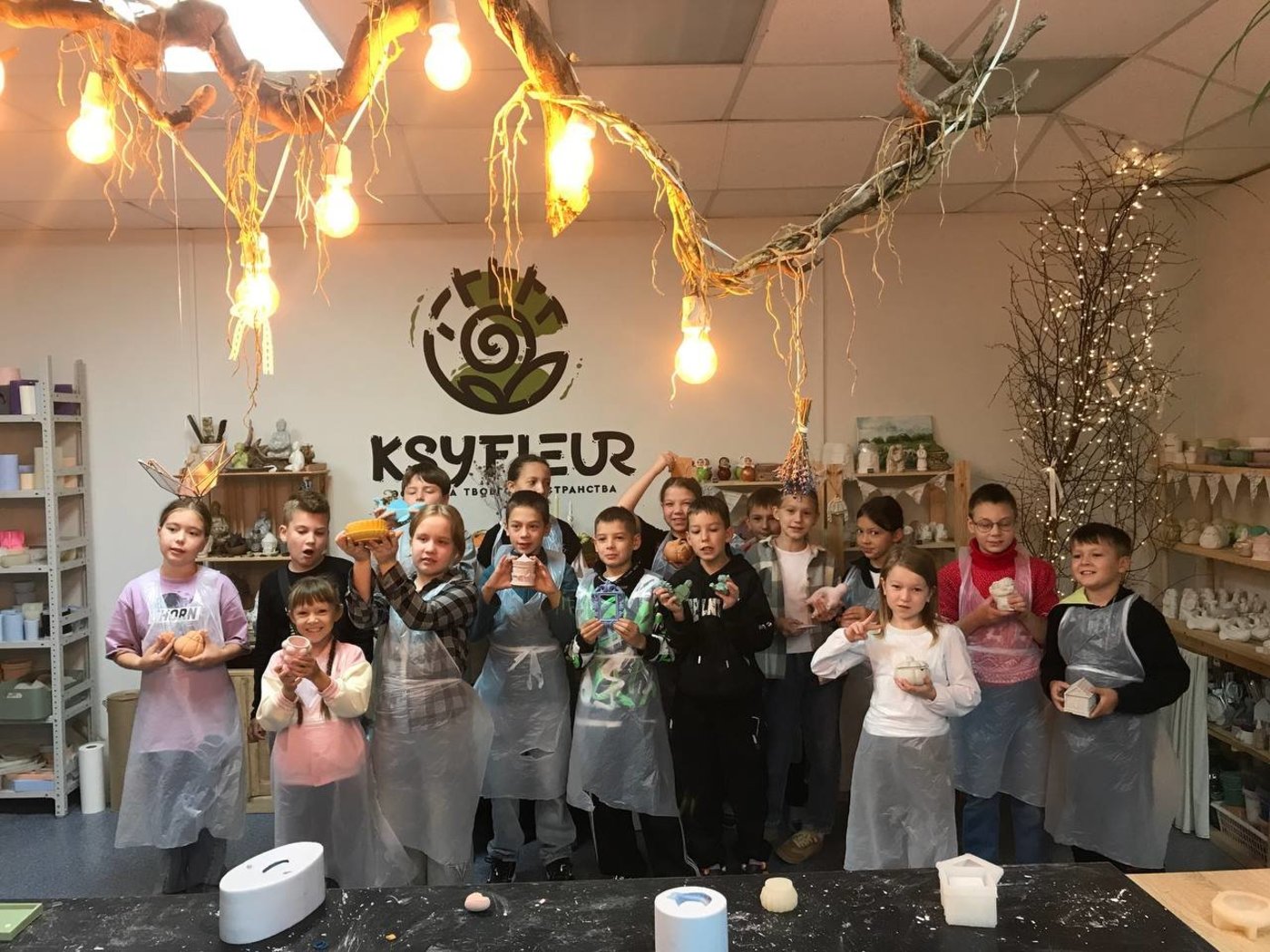 27 сентября ученики 4Г класса с классным руководителем Зайцевой Т.И. побывали в творческой мастерской Ksyfleur на мастер-классе по изготовлению фигурки - подсвечника из гипса.