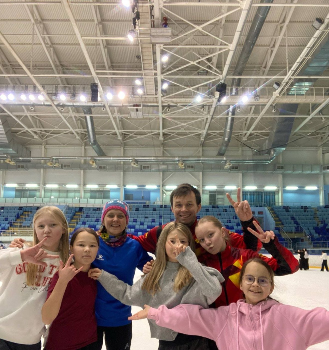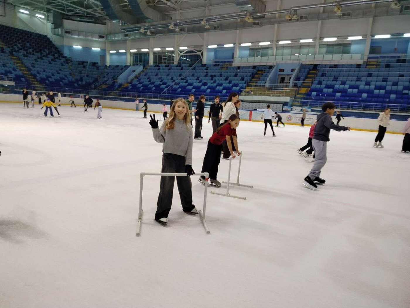 Катание на коньках дает не только хорошую физическую нагрузку, но и укрепляет взаимоотношения в коллективе.