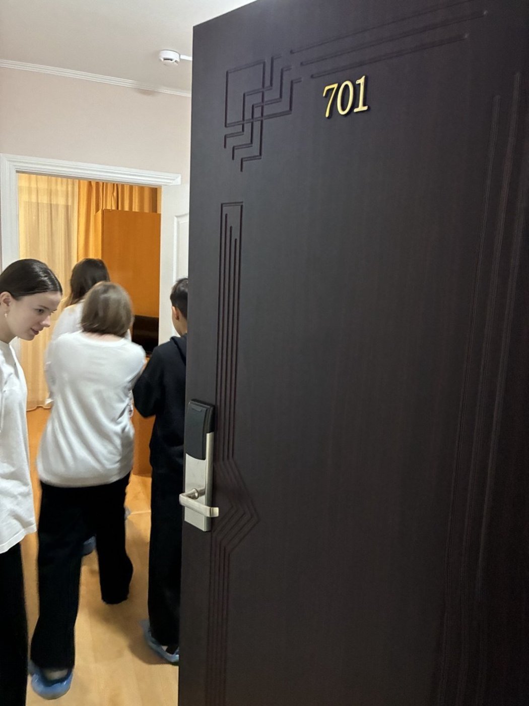 28 ноября учащиеся 7Г получили уникальную возможность познакомиться с гостиничным бизнесом - посетили чебоксарскую гостиницу «Спорт». Директор Любовь Михайловна и бухгалтер Татьяна Сергеевна стали для семиклассников проводниками в мир профессионального гостеприимства. Экскурсия началась с истории гостиницы, рассказанной директором с теплотой и любовью к своему делу. Ребята узнали, кто работает в гостинице, какие трудности приходится преодолевать, каким образом гостиница достигла сегодняшнего уровня комфорта и сервиса. Далее отправились осматривать помещения отеля: холл, банкетный зал, номера разных категорий. Можно было оценить уровень оснащенности номеров, удобство планировки и многое другое. Особое внимание было уделено работе персонала: ребята познакомились с работой сотрудников службы приема и размещения гостей, сервисной службой и даже побывали в кабинете администрации. Во время экскурсии школьники активно задавали заранее подготовленные вопросы. Интересовало буквально все, начиная от любопытных деталей повседневной работы сотрудников («Какие обязанности входят в работу администратора? Обязательно ли знать иностранные языки?»), заканчивая экономическими аспектами функционирования бизнеса («Сколько стоит электроэнергия в месяц?»). Выяснили, что в гостинице останавливались А.Николаев, Д. Мацуев, Н. Бабкина и, конечно, многие спортсмены. Ответы директора были исчерпывающими и открытыми, что позволило ребятам лучше понять особенности организации гостиничного дела. Эта встреча была не только познавательной, но и вдохновляющей. Она показала ученикам, что профессия в области гостеприимства открывает широкие возможности для самореализации и творчества. Спасибо руководству и сотрудникам гостиницы «Спорт» за теплый прием!