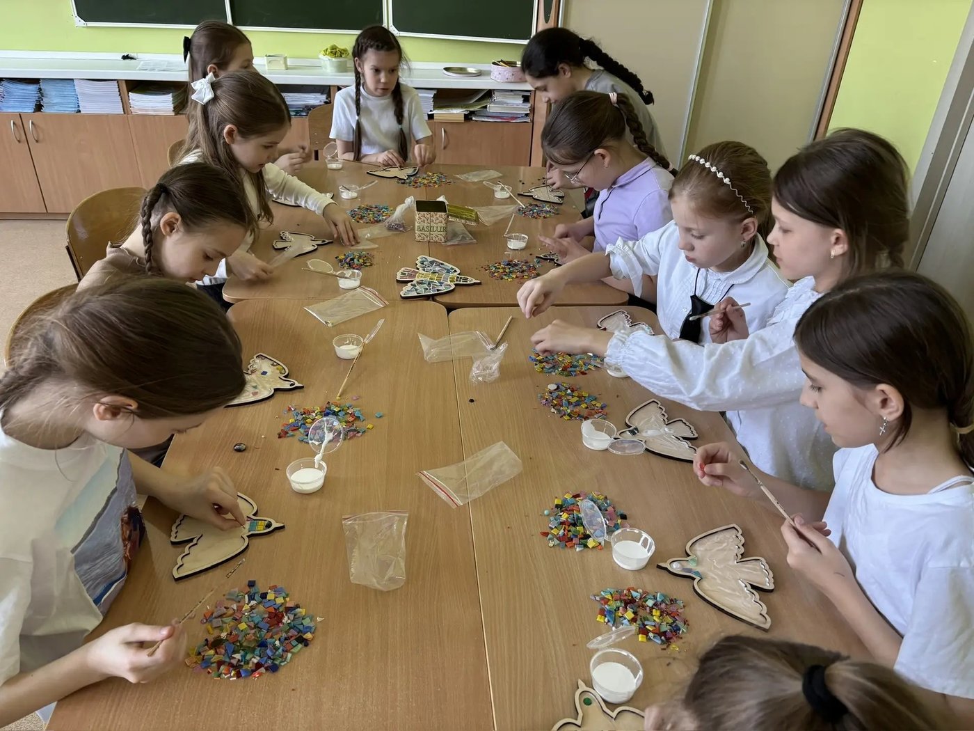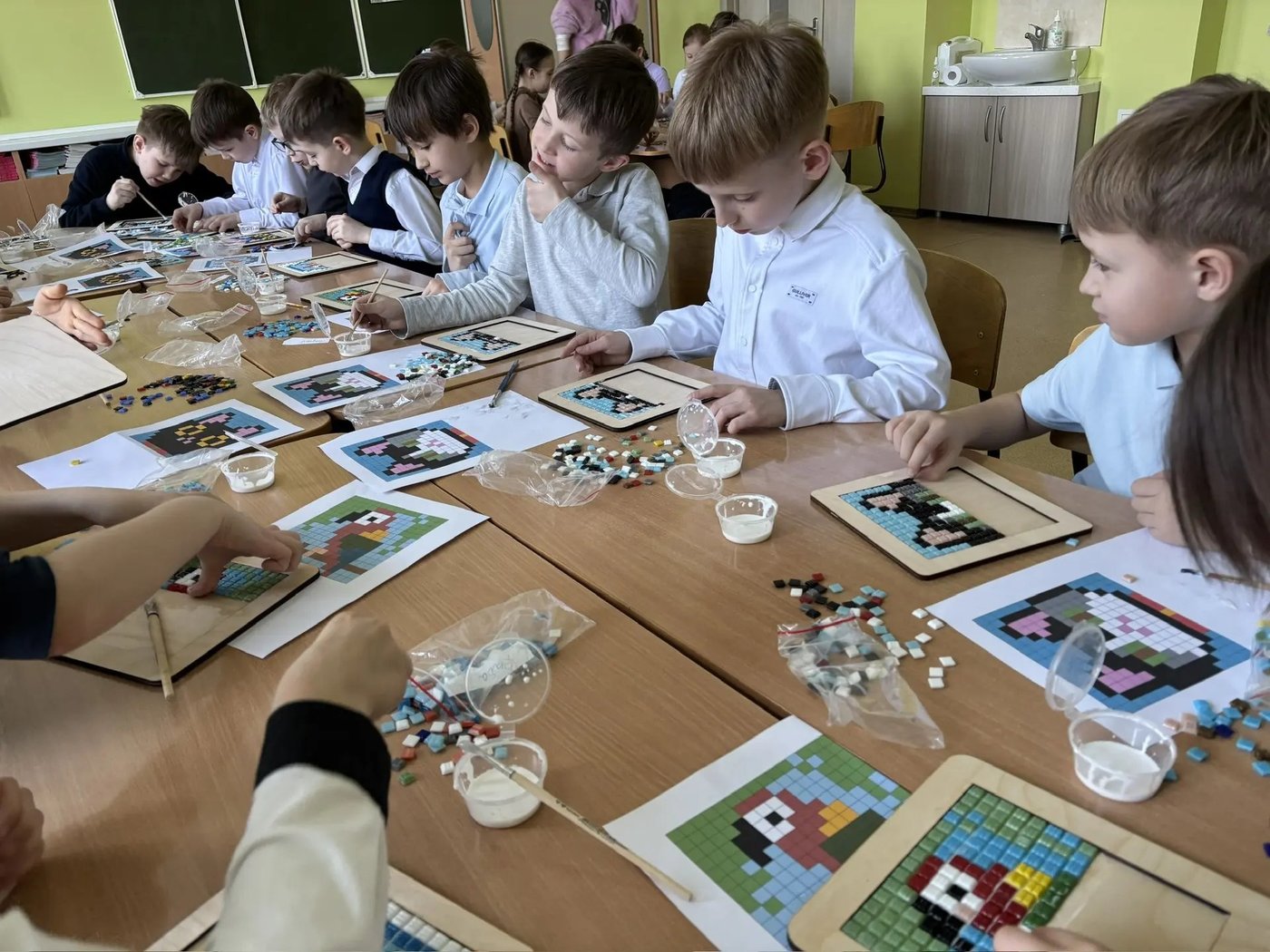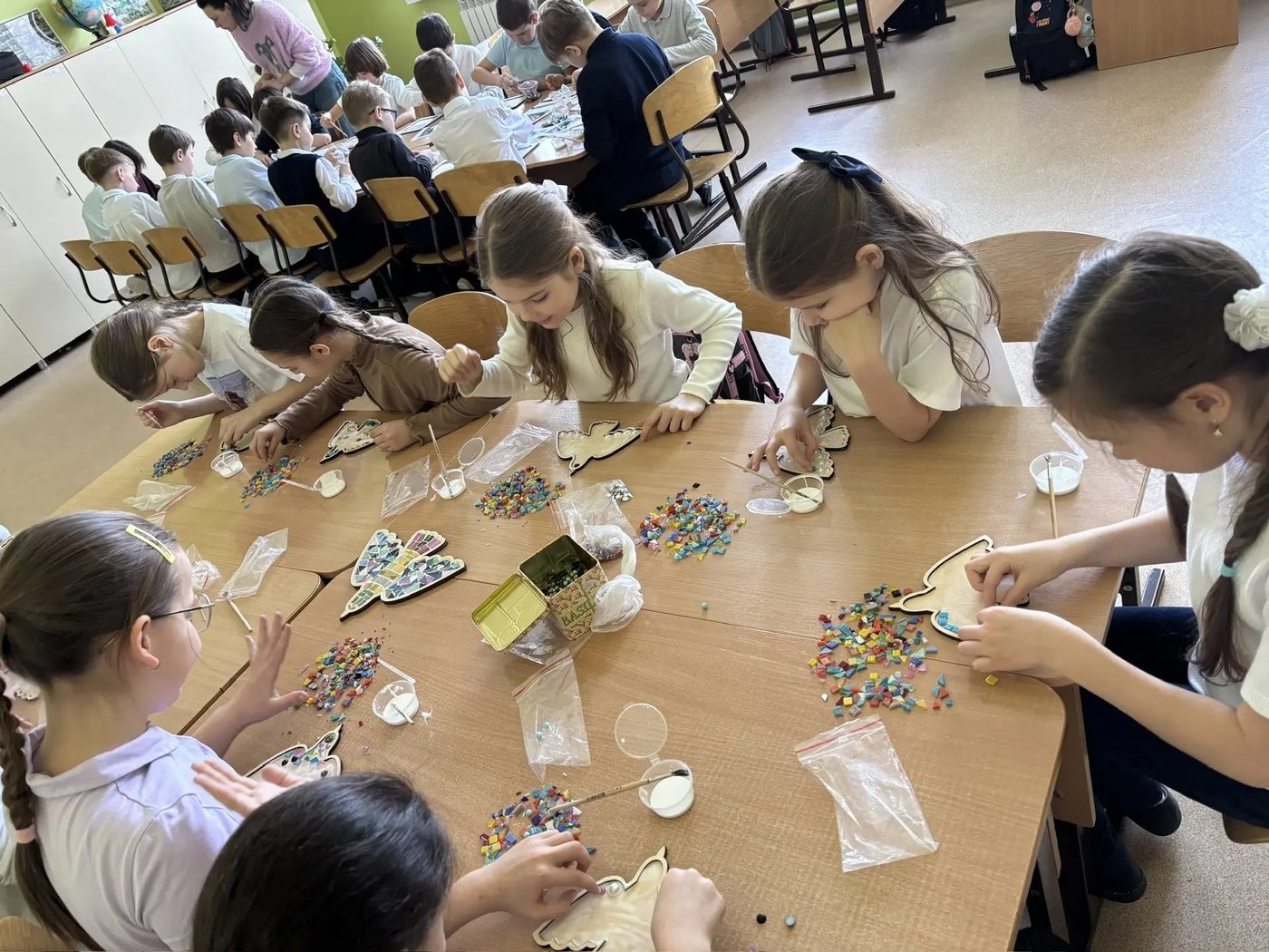 Юные мастера 3"И" класса перевоплотились в настоящих художников и создали удивительные поделки животных в уникальной технике мозаики!