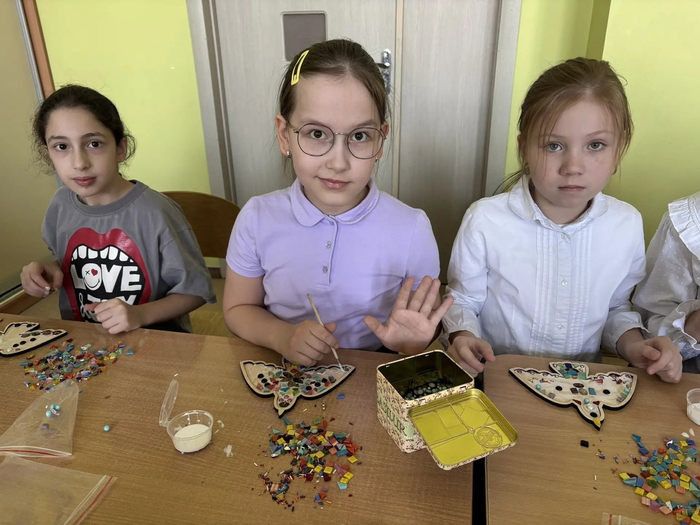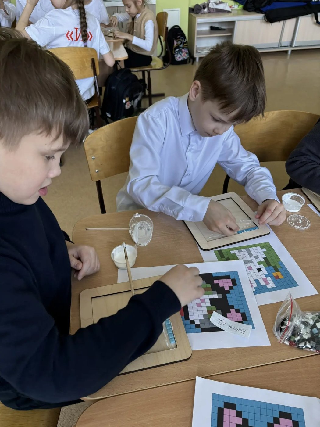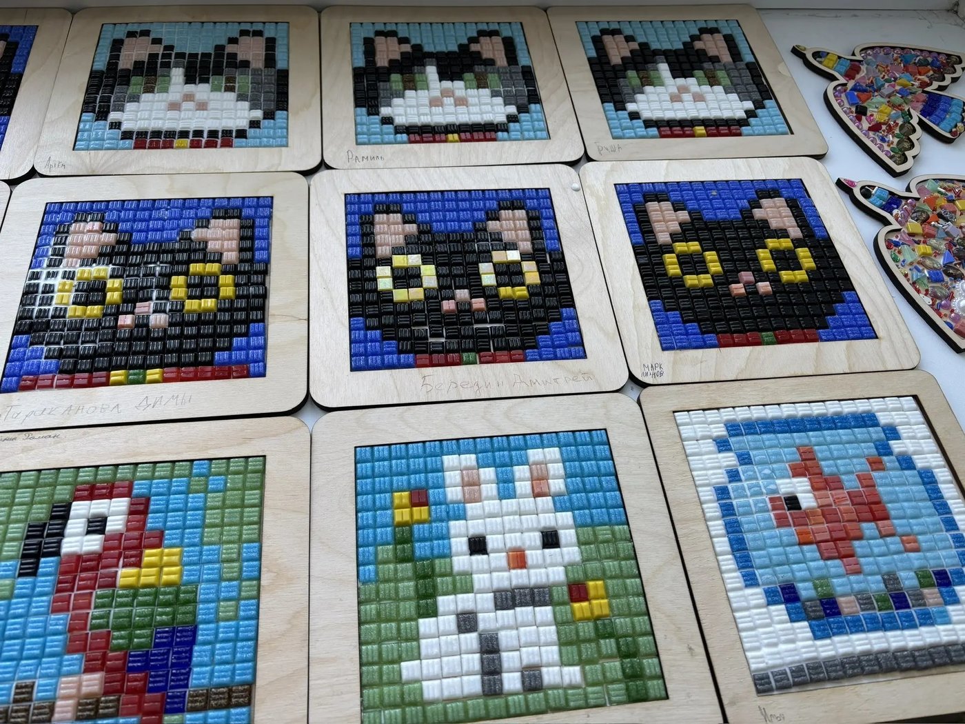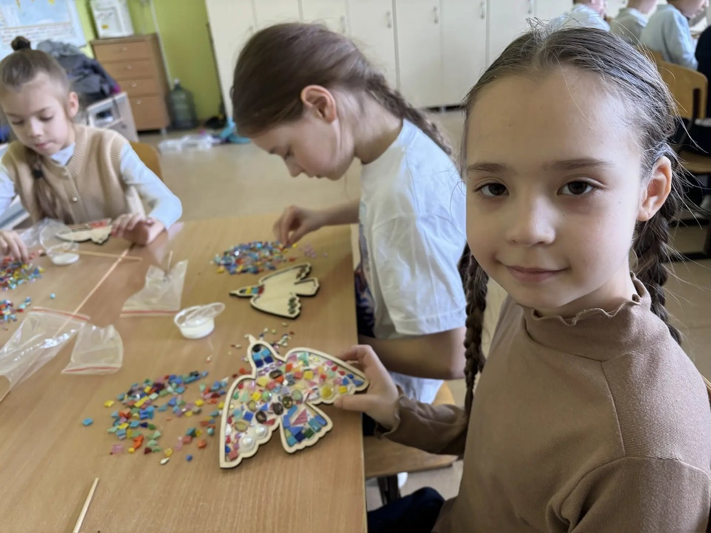 Юные мастера 3"И" класса перевоплотились в настоящих художников и создали удивительные поделки животных в уникальной технике мозаики!