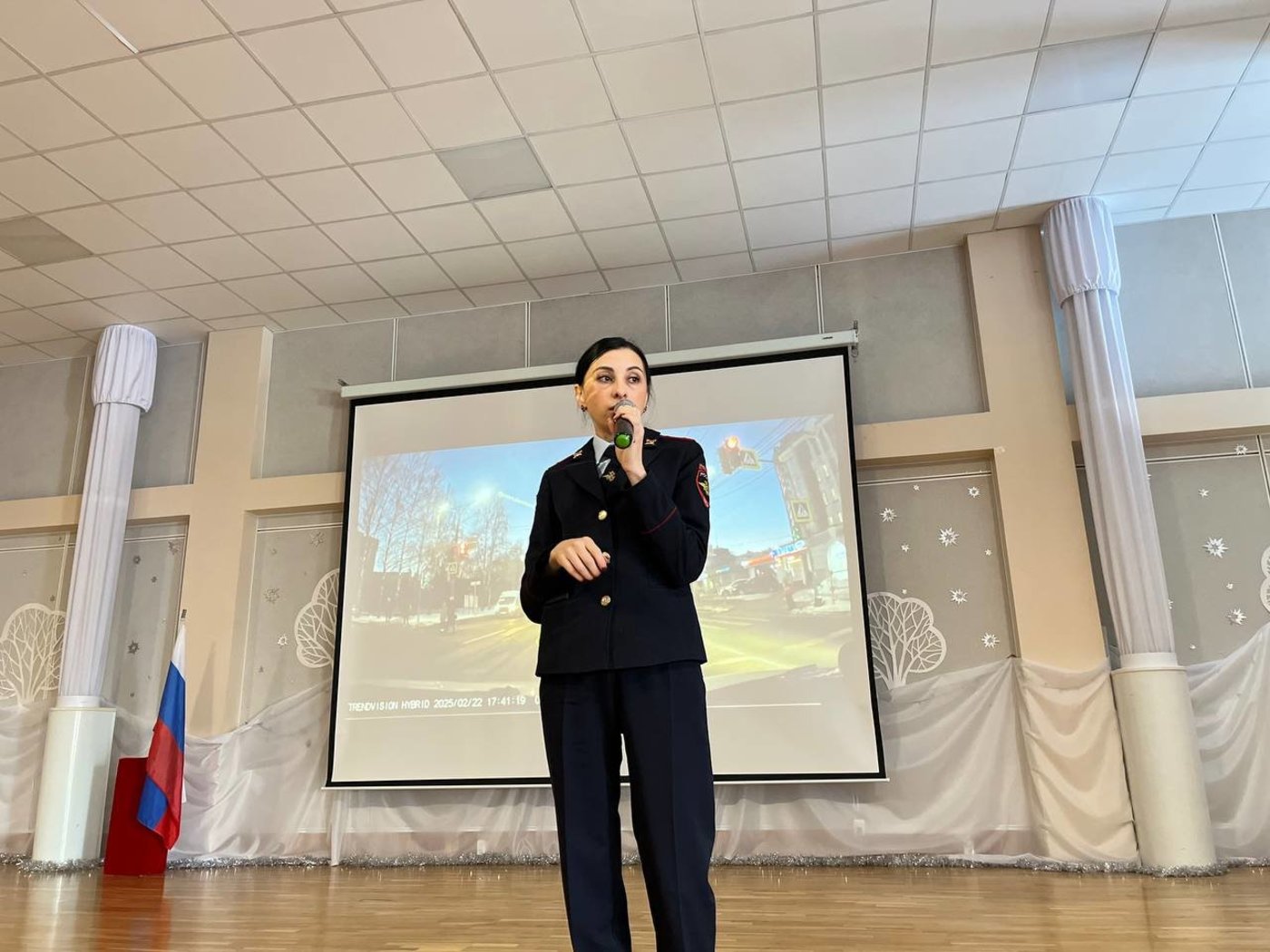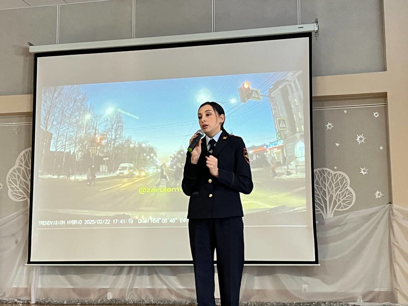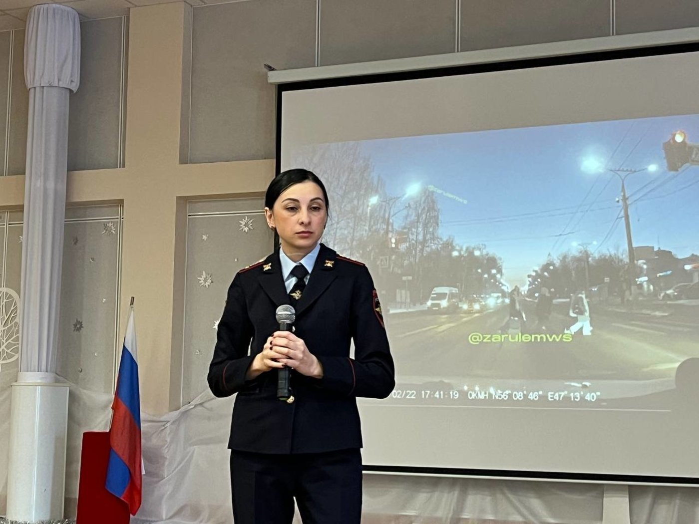 В ходе встречи инспектор ГИБДД рассказала учащимся о том, как правильно вести себя на дорогах, пешеходных переходах и в общественном транспорте, рассказала о детских удерживающих устройствах для автотранспорта и необходимости их использования. Инспектор отметила, что использование наушников с музыкой и мобильного телефона недопустимо при переходе проезжей части дороги. Кроме того она выразила надежду, что развитие понимания опасности при нахождении на проезжей части детьми-пешеходами позволит снизить дорожно-транспортный травматизм.