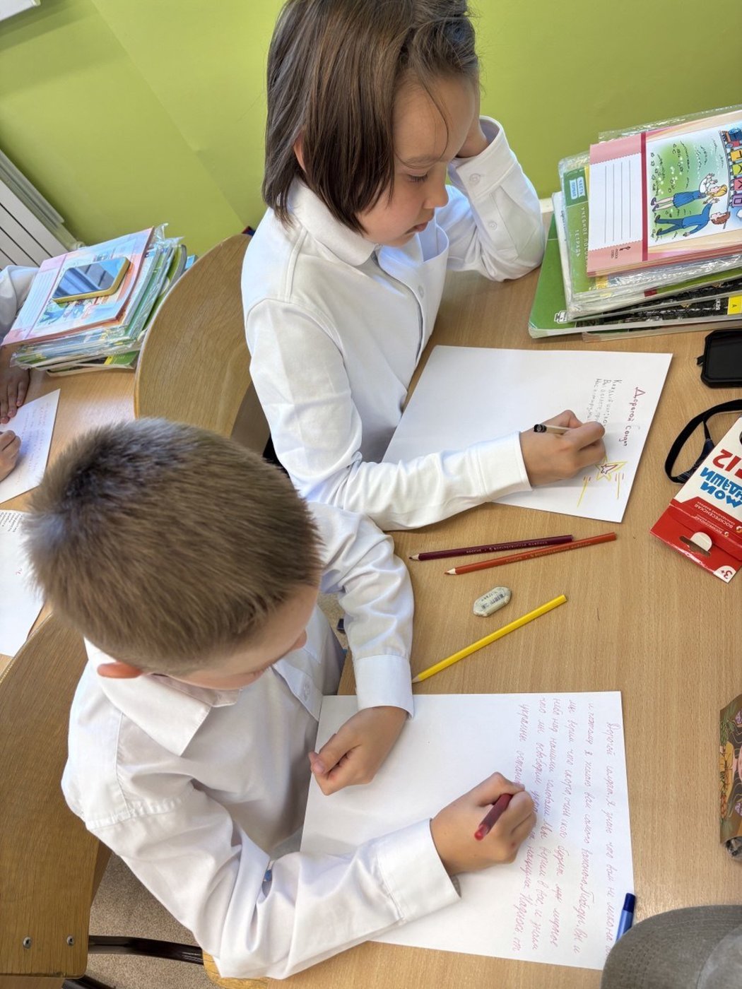 Ребята написали письма, в которых выразили свою благодарность солдатам на передовой. В них они выражали свои чувства и гордость. Сейчас всем нам важно сплотиться вокруг общей цели.
