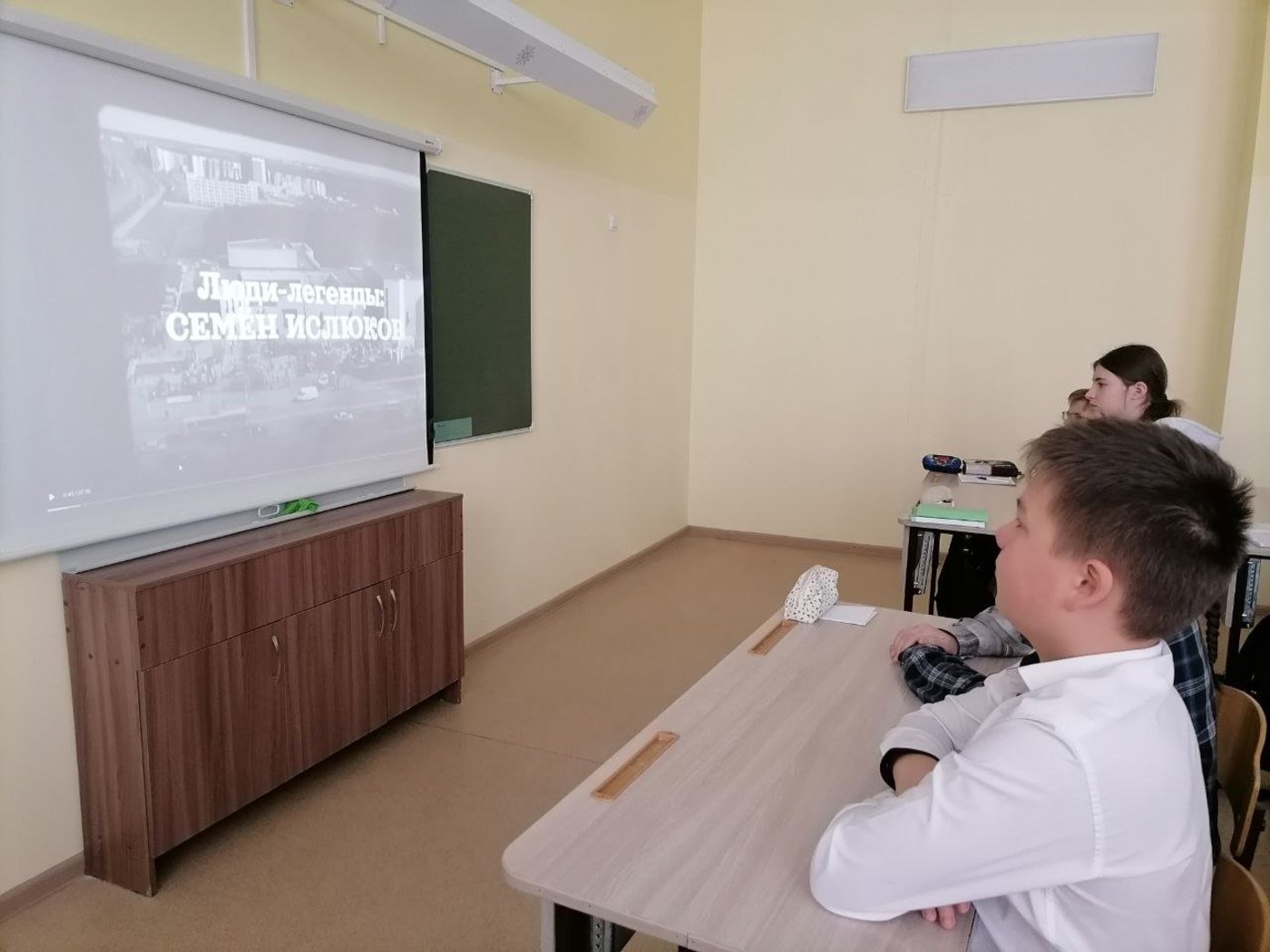 На едином тематическом уроке "Семен Ислюков: личность, эпоха, наследие" обучающиеся посмотрели документальный фильм "Люди-легенды: Семен Ислюков".