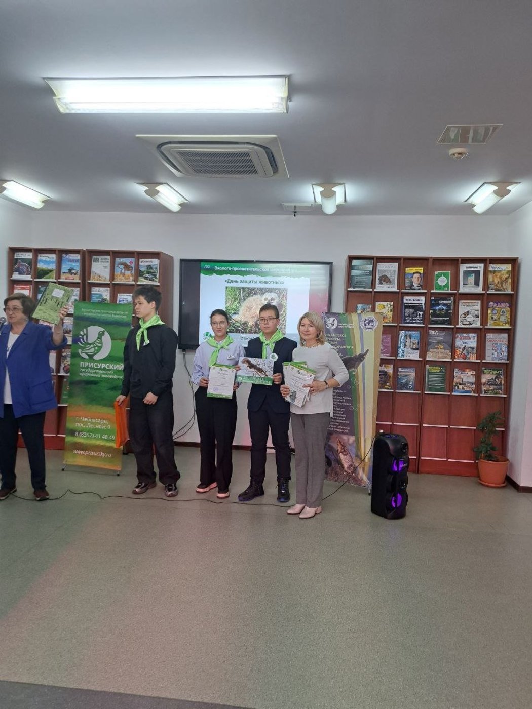 2 октября 2025 года в Национальной библиотеке состоялось эколого-просветительское мероприятие, посвящённое Дню защиты животных. На интеллектуальную игру собрались более 20 команд из учебных заведений Чувашской Республики. МАОУ «СОШ № 1» представила команда «Green» обучающихся 9 А класса: Иванов Денис, Ефимов Игорь и Кушнирова Ксения под руководством учителя биологии Леонтьевой В.Ю. и учителя географии Петровой М.В.