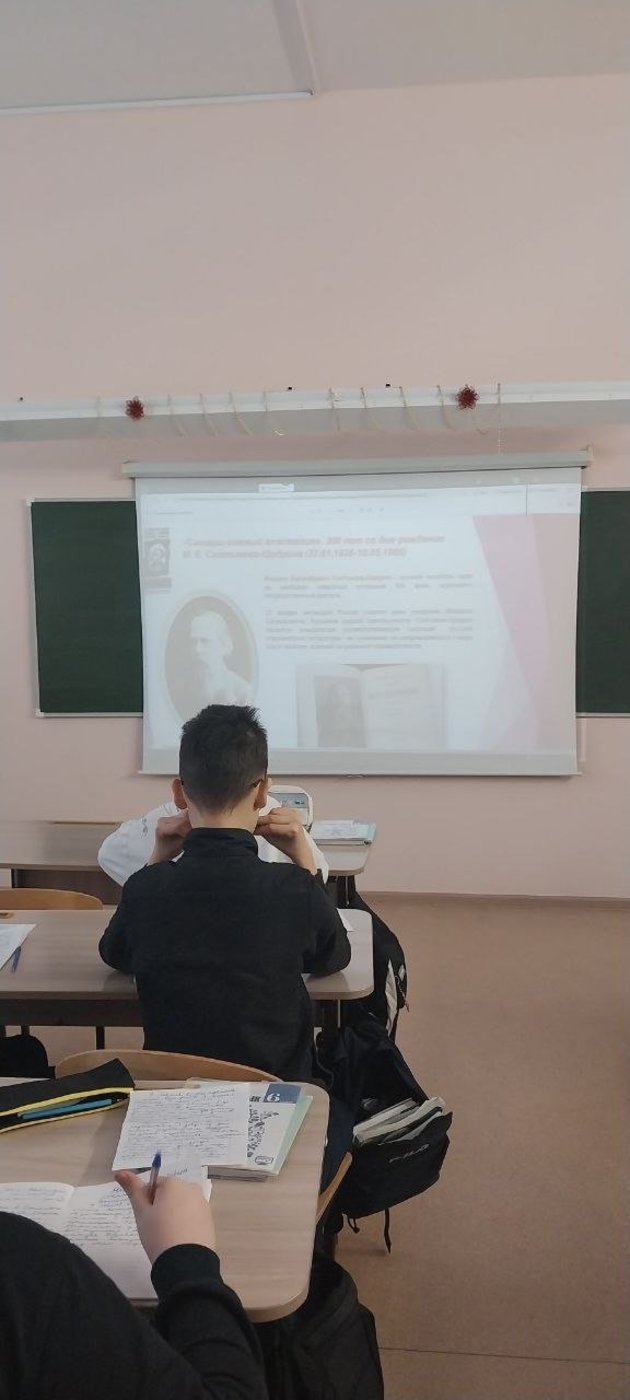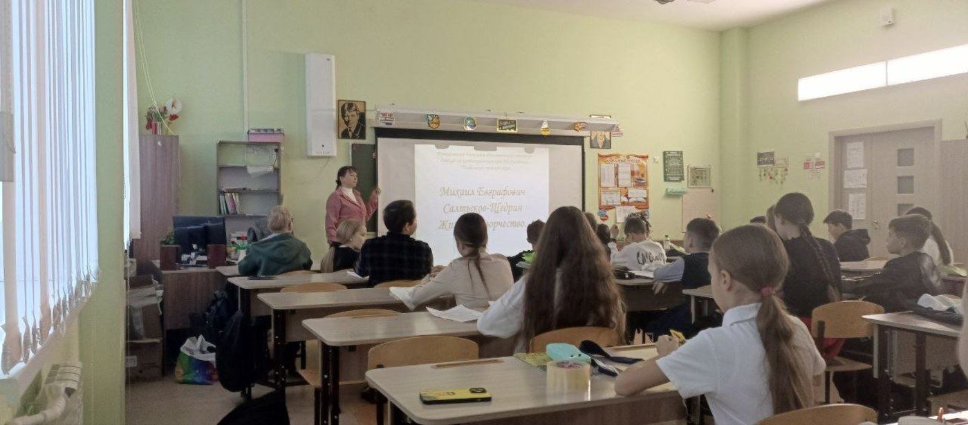 Так же прошли уроки-знакомства с писателем М.Е. Салтыковым-Щедриным "Сатиры смелый властелин" в 5 и 6 классах, которые провела Орлова И.Ю.