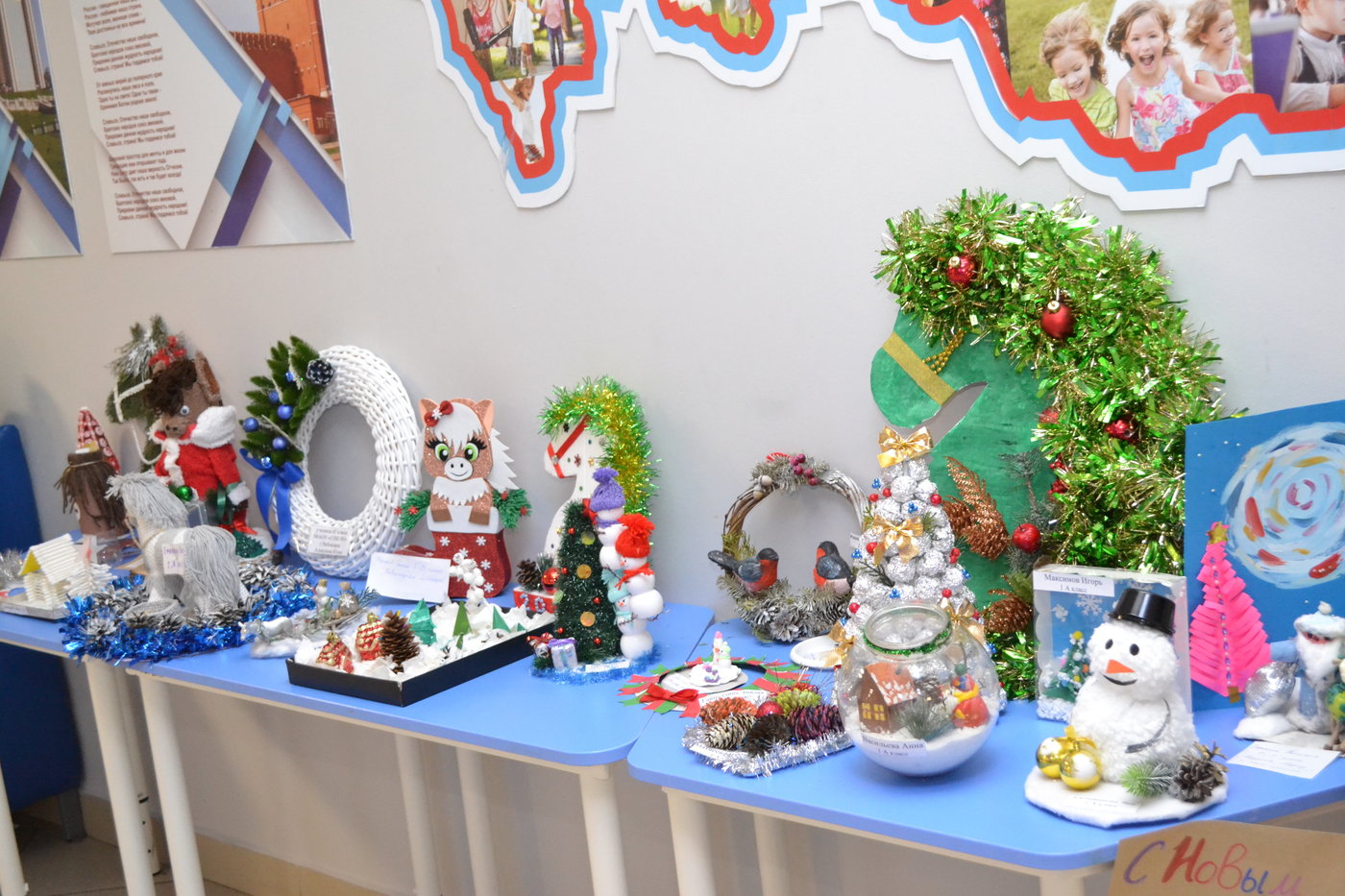 Проявив творчество, смекалку, огромное трудолюбие, учащиеся вместе с родителями изготовили настоящие шедевры! Поделки получились очень оригинальные и разнообразные. На выставке можно увидеть композиции «Новогодняя елка», «Символ года» и многое другое.