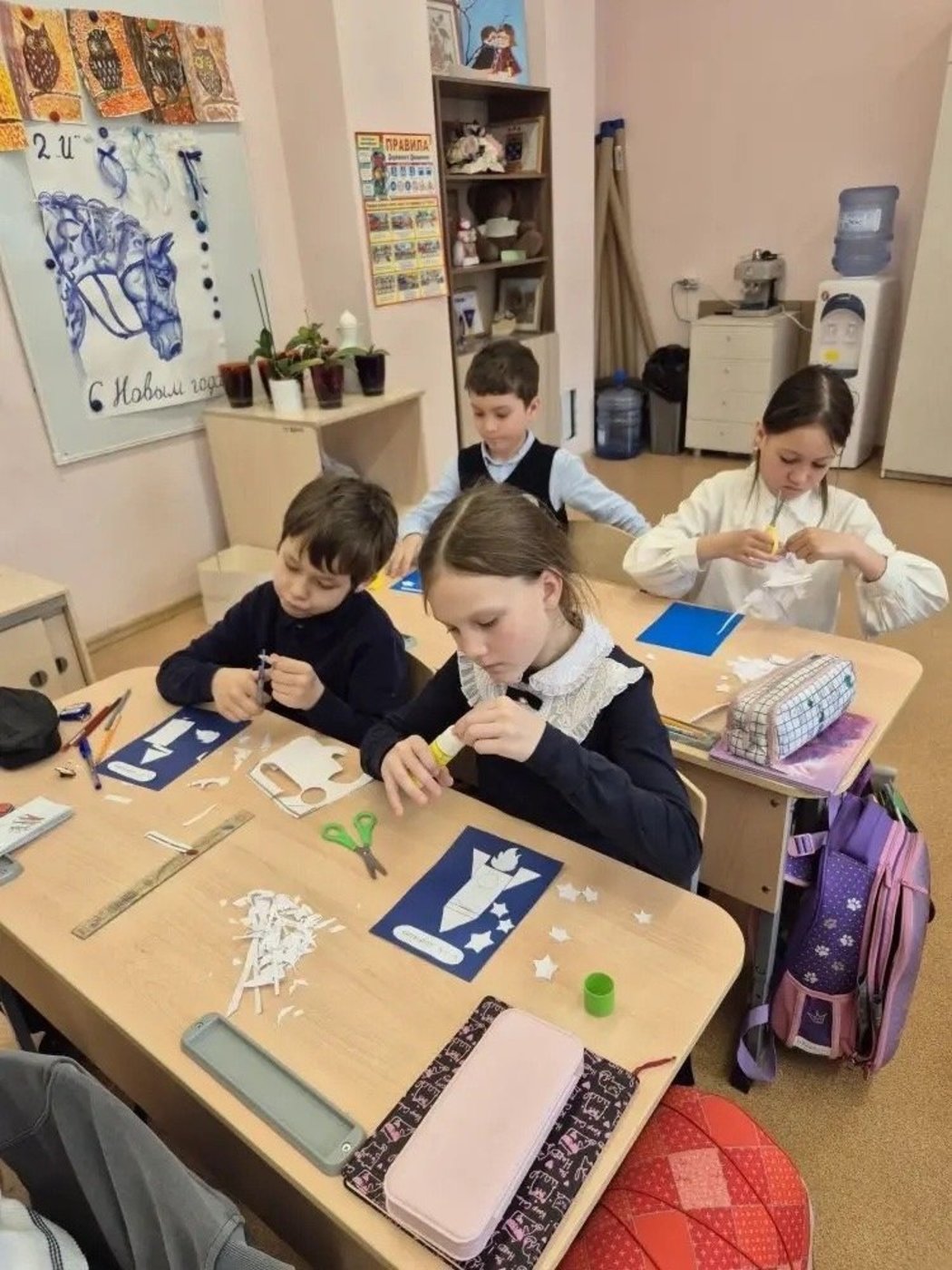 Это занятие стало для второклассников не только увлекательным творческим процессом, но и поводом задуматься о величии Вселенной, о роли науки и технологий в освоении звёздных просторов. Работая над открытками, дети узнали больше о достижениях нашей страны в космической сфере, о первых космонавтах и современных исследованиях.