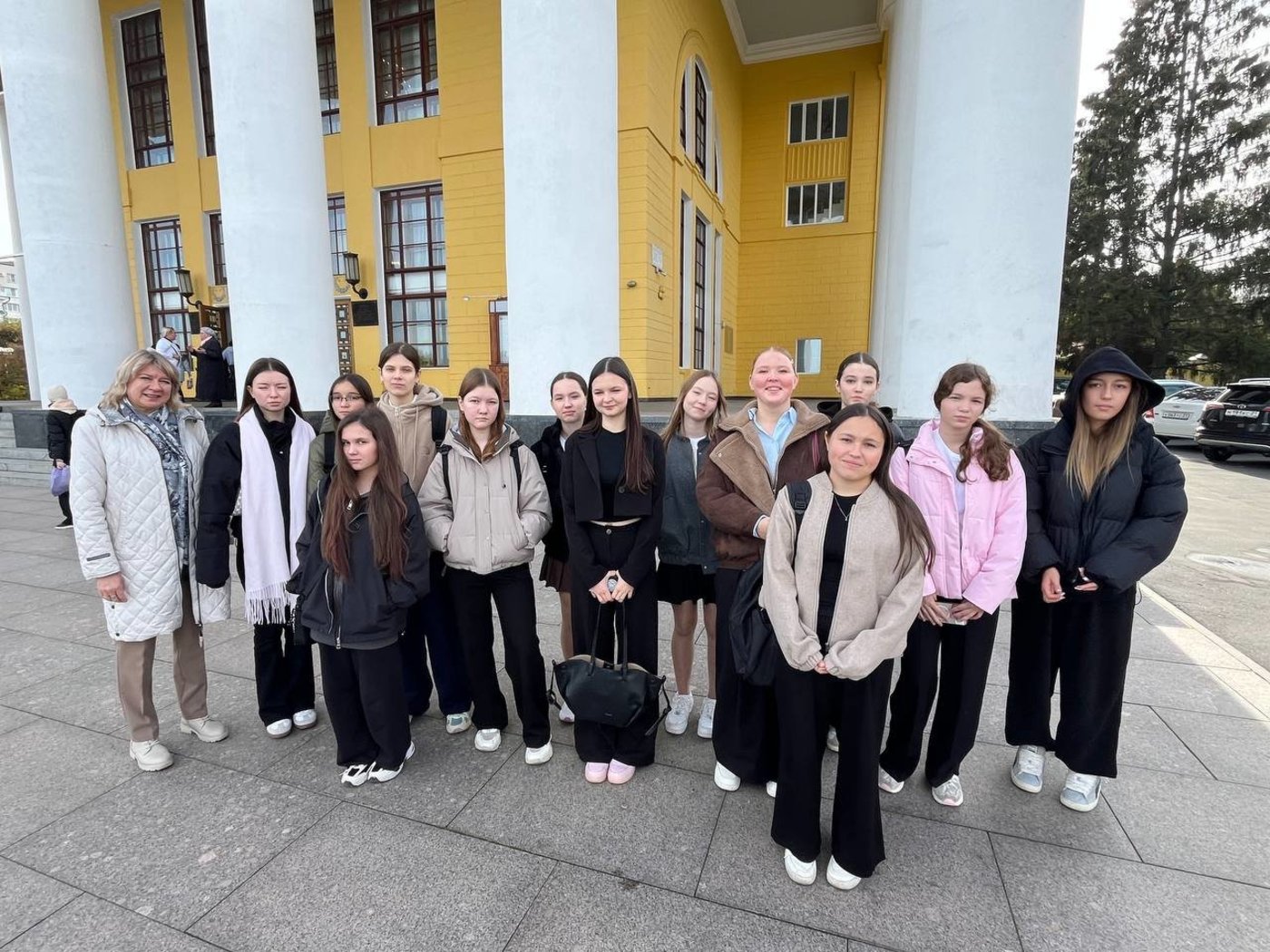 8 октября ученики 8Б, 9А и 9Д классов в рамках проектов "Пушкинская карта" и "Культурная среда" инициированного Главой Чувашской Республики О.А. Николаевым, побывали в Чувашском государственном академическом драматическом театре имени К.В. Иванова на спектакле «Аманнă шăпа» (Израненная судьба), посвященного участникам и ветеранам Великой Отечественной войны.