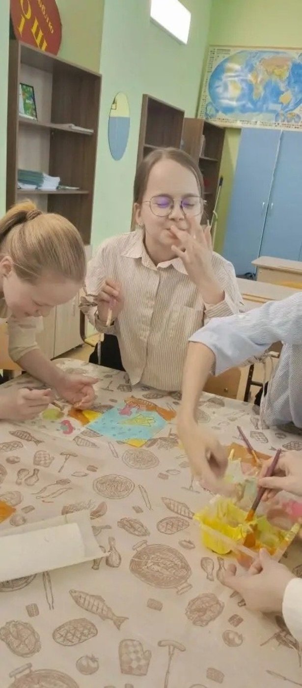 В 5д классе состоялось увлекательное яркое сладкое — мастер-класс по рисованию шоколадом на рисовой бумаге «Космос на вкус». Пятиклассники попробовали себя в роли «космических художников», сменив привычные краски на настоящий шоколад.