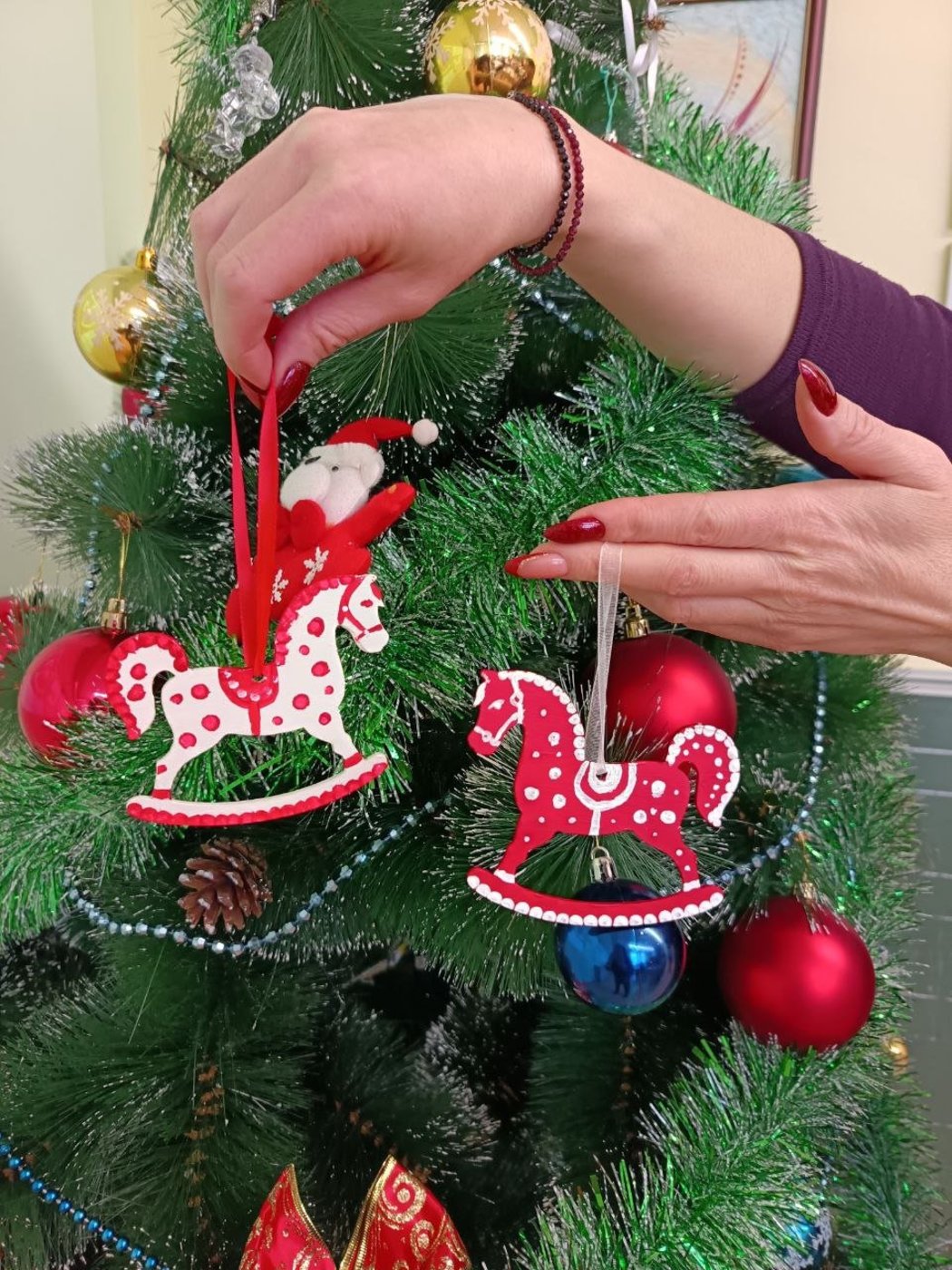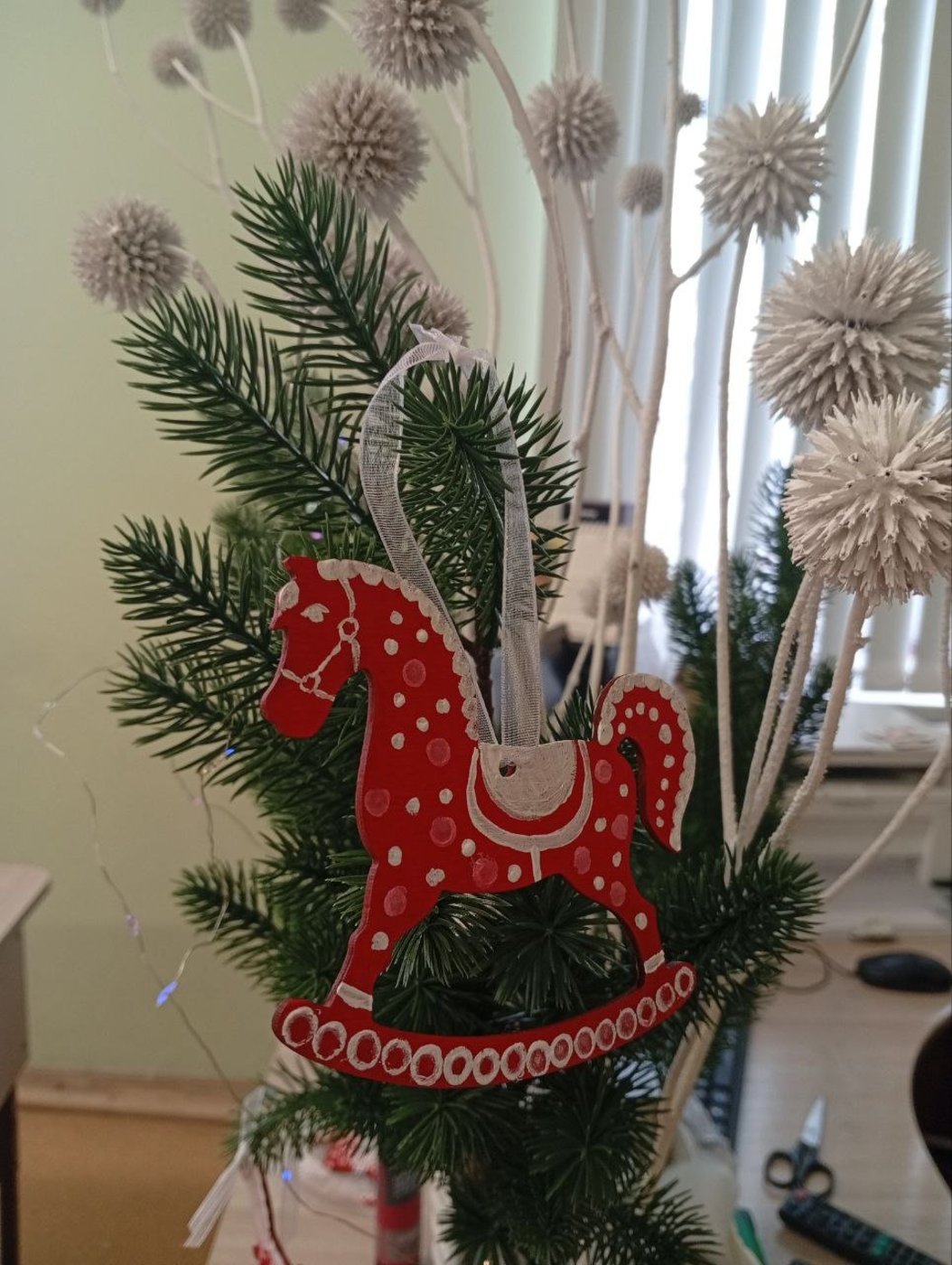 Всем без исключения известно, что 2026 год по китайскому гороскопу - год красной огненной лошади. Вот и наши учителя для своих лошадок выбрали яркий красный цвет. Золотые, синие и белоснежные снежинки получились очень ажурные, нежные, как настоящие. Такие сувениры, выполненные своими руками в виде елочной игрушки, станут замечательными подарками или украшениями новогодней композиции.