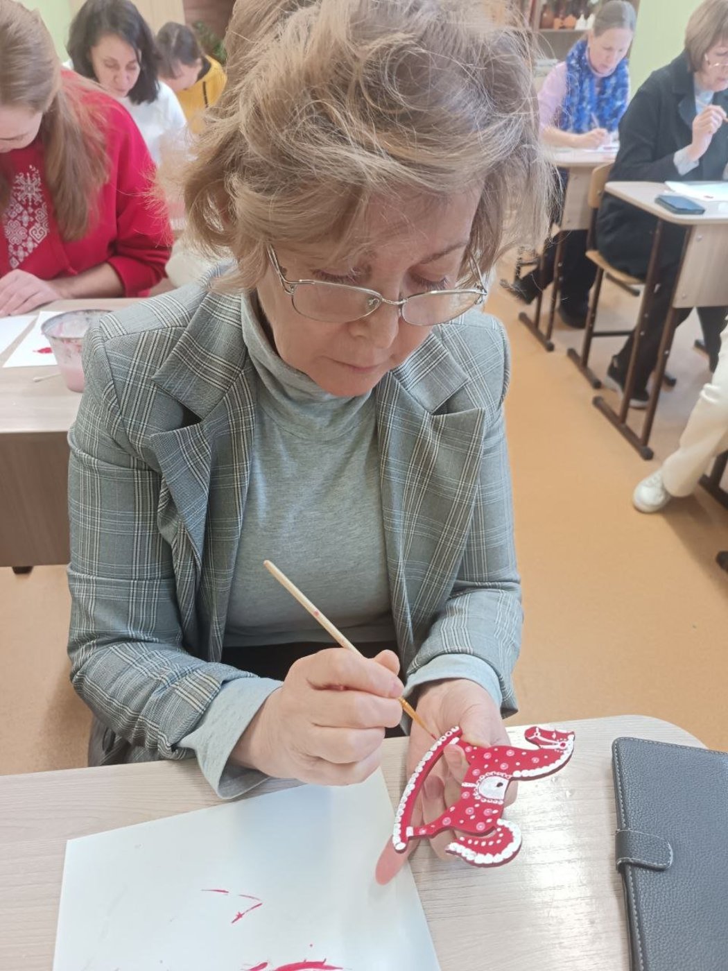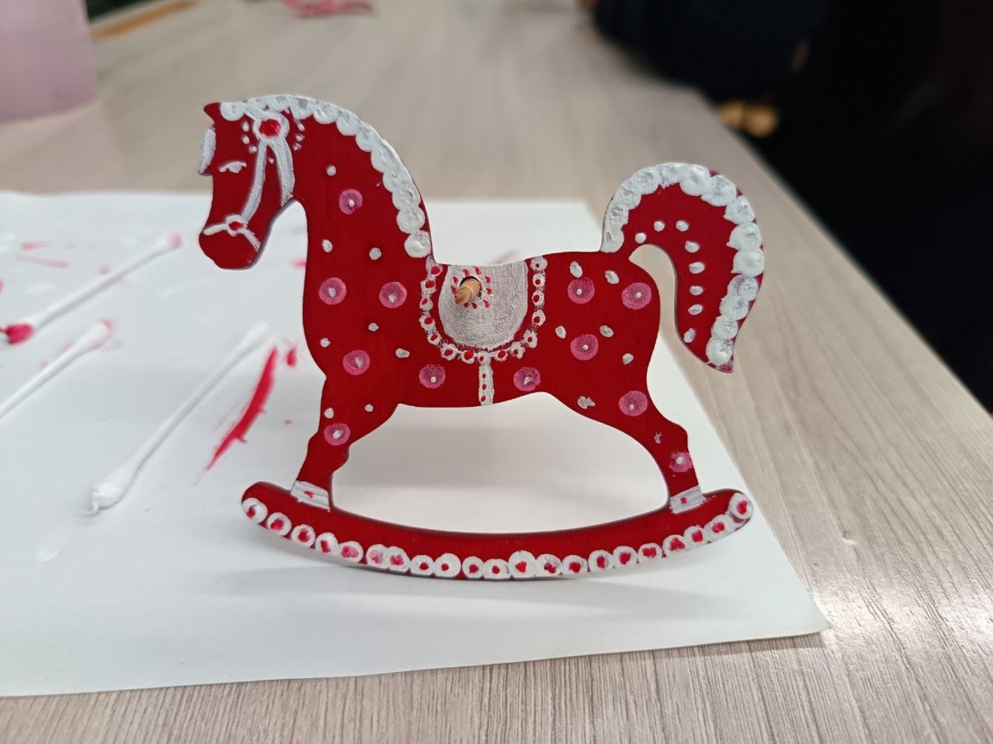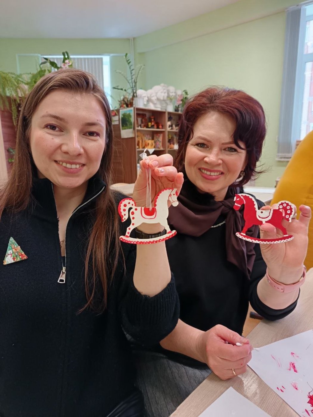 29 декабря по инициативе и под руководством учителя технологии Антоновой Эльвиры Дмитриевны и учителя ИЗО Литвиненко Галины Анатольевны в нашей школе прошел новогодний мастер-класс для педагогов "Символ года" по росписи деревянных лошадок.