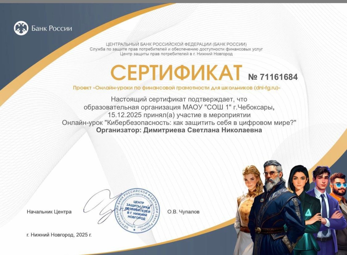 На этой неделе прошел ряд онлайн-уроков финансовой грамотности: «Основы страхования: зачем нужна страховка?", "Осторожно, мошенники: как распознать обман?" , "С деньгами на «ты», или Секреты финансовой грамотности", "Кибербезопасность: как защитить себя в цифровом мире?".