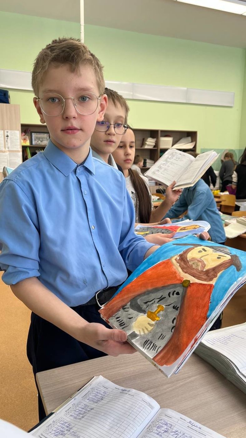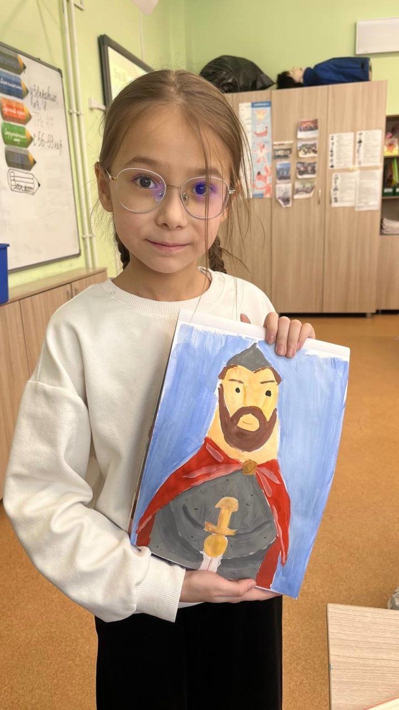 А ребята из 4Б класса нарисовали открытки с изображением русских богатырей. Ведь с древних времен русские солдаты стоят на страже нашей Родины, охраняя ее от нашествий завоевателей.