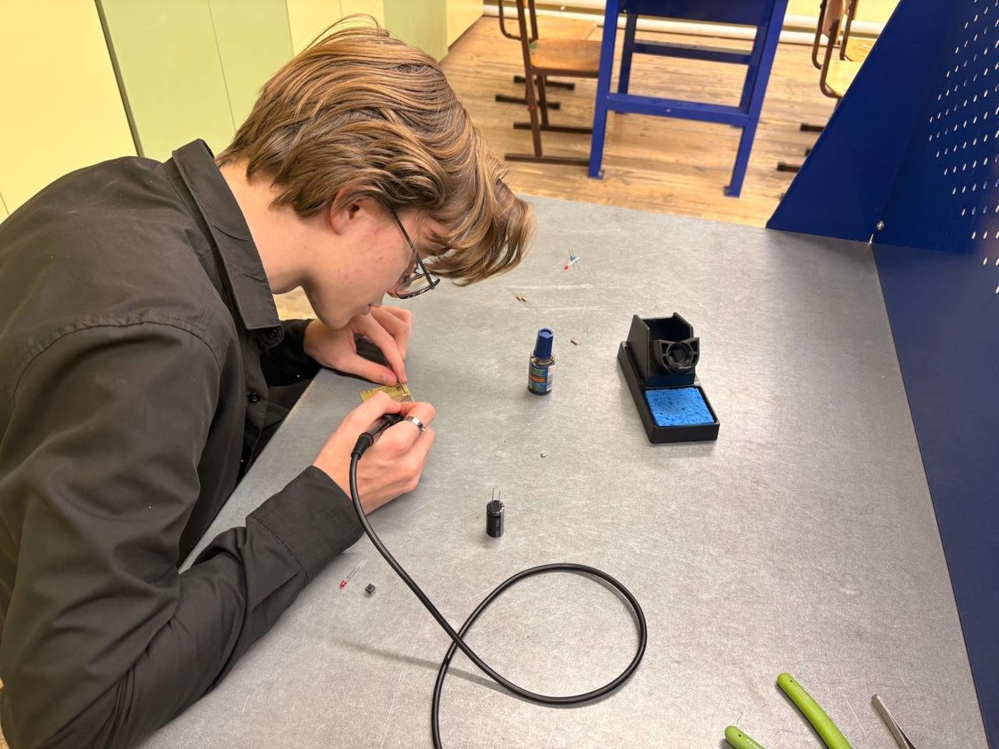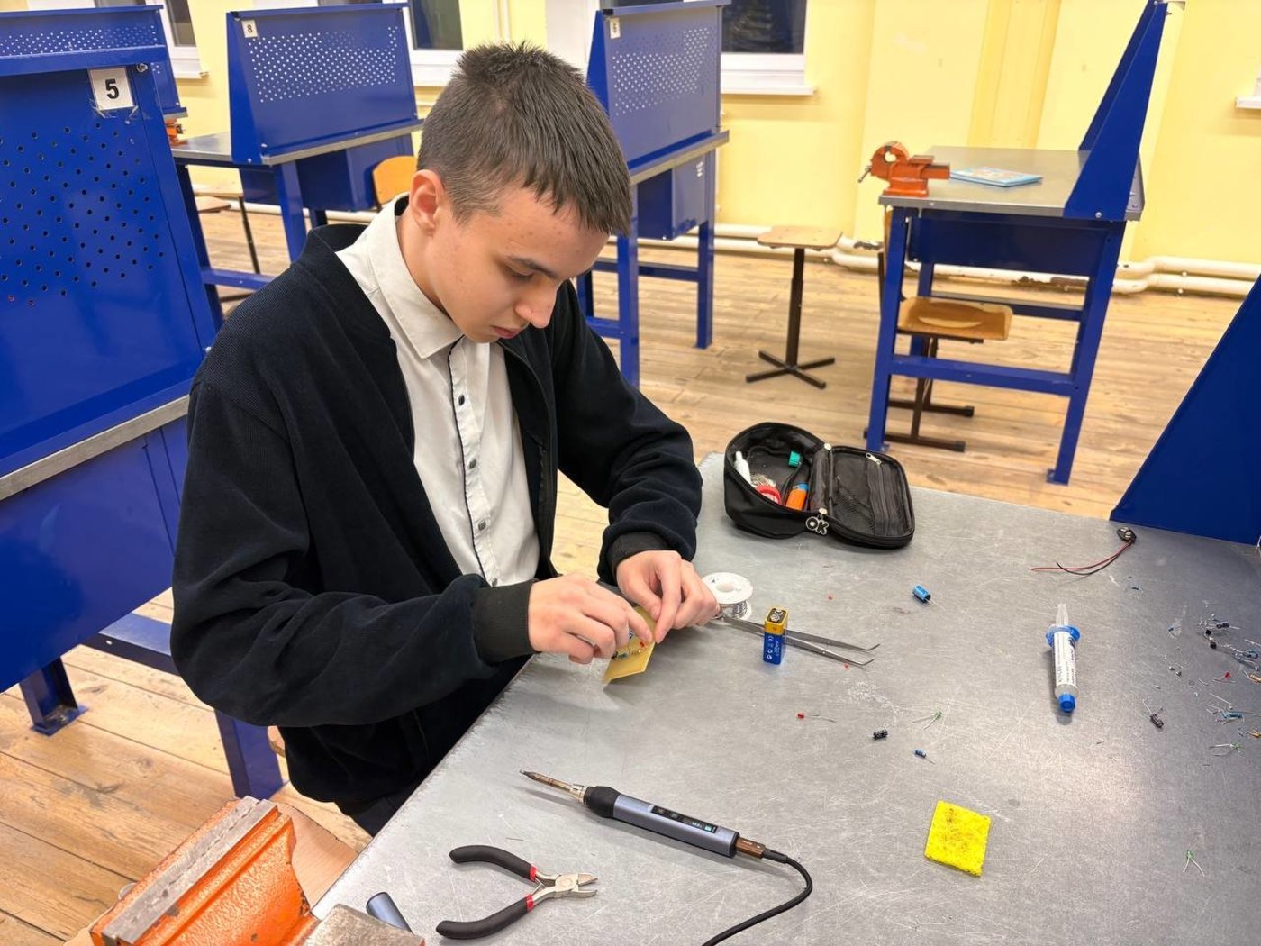 Ребята изучают теоретические основы изготовления печатных плат, собирают электрические схемы несложной конструкции, получают навыки паяния микросхем.