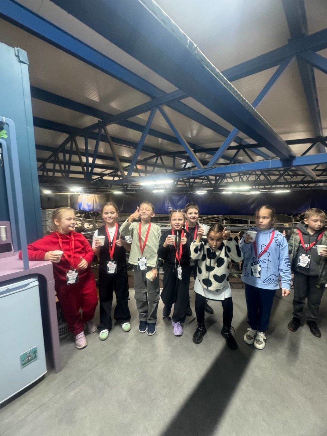 Все с нетерпением ждали катания на карусели, но, как оказалось, катание на карусели – это привилегия буренок. Карусель – это большая доильная установка, на которой коровы «катаются» и одновременно отдают молоко. Чтобы ребята не расстраивались из-за неудавшегося катания, работники фермы угостили их свежим молоком и разными йогуртами.