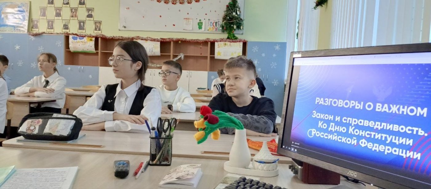 15 декабря 2025 г. в нашей школе прошли традиционные занятия «Разговоры о важном», посвящённые теме: "Закон и справедливость, приуроченные ко Дню Конституции Российской Федерации."