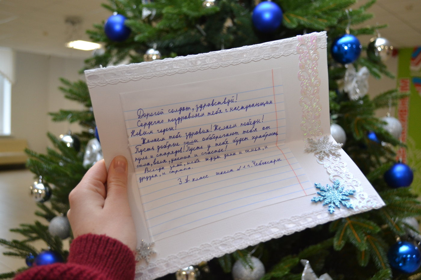 Ребята с большим энтузиазмом и теплотой подошли к созданию поздравительных посланий. Каждая открытка сделана своими руками, украшена яркими рисунками, узорами и добрыми словами. В своих трогательных текстах школьники обращаются к военнослужащим с искренними поздравлениями, желают им крепкого здоровья, сил, победы и самого главного – скорейшего возвращения домой к своим семьям.