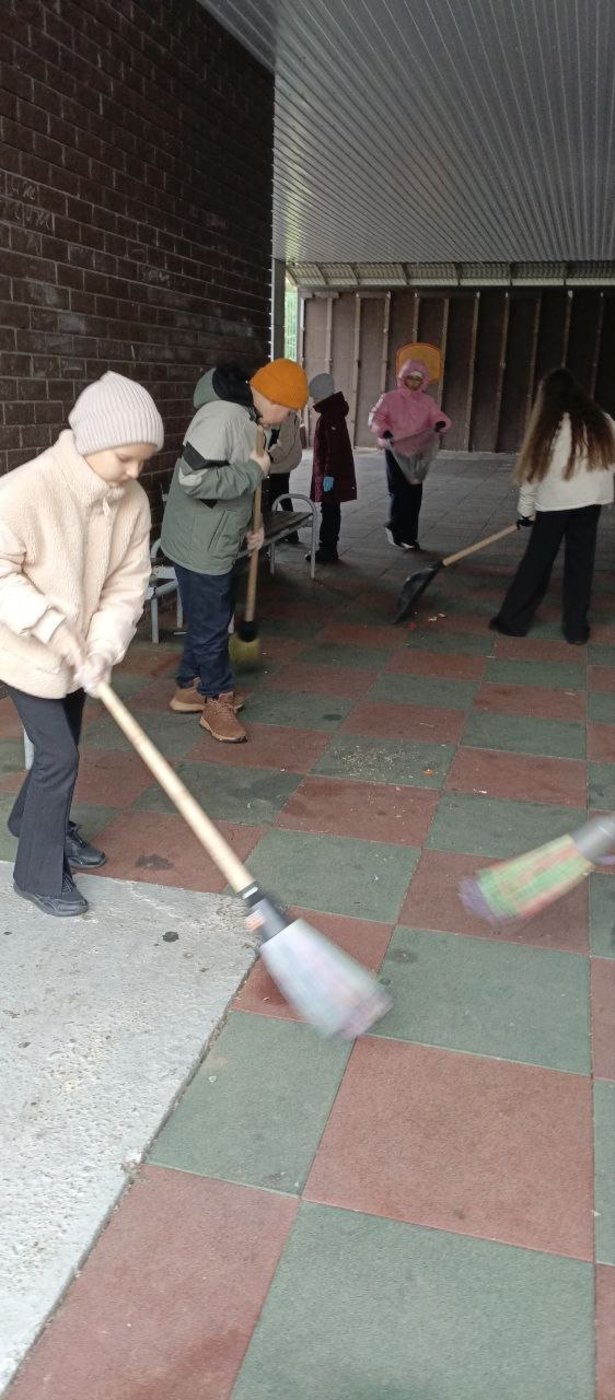 Ученики СОШ 1 продолжают поддерживать чистоту на территории школы и вокруг нее. 5Д класс с классным руководителем Фадеевой М.Л. собрали мусор на школьном стадионе, подмели игровую площадку.