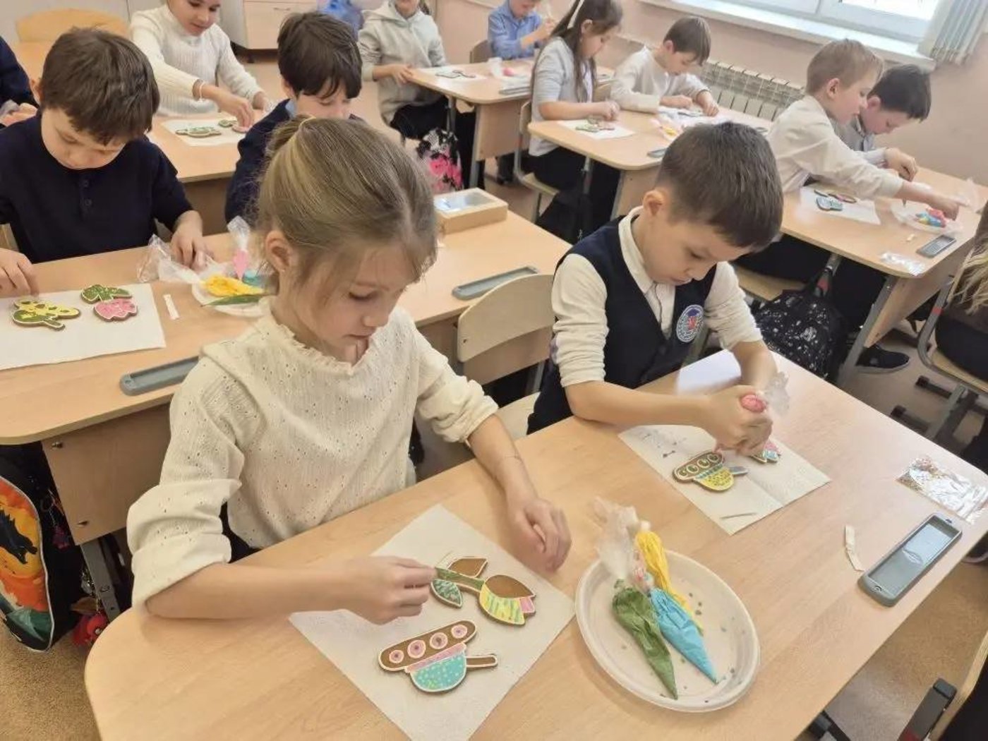 2 марта в рамках празднования Дня защитника Отечества и Международного женского дня во 2 И классе (классный руководитель Эрень Марина Ивановна) прошёл мастер-класс по росписи пряников. Один пряник был в форме танка, символа силы, мужества, отваги, а второй - в форме тюльпана, символа весны, нежности, красоты! Ребята творчески подошли к работе, и изделия получились разные, но все яркие, красочные, праздничные! Все были очень довольны!