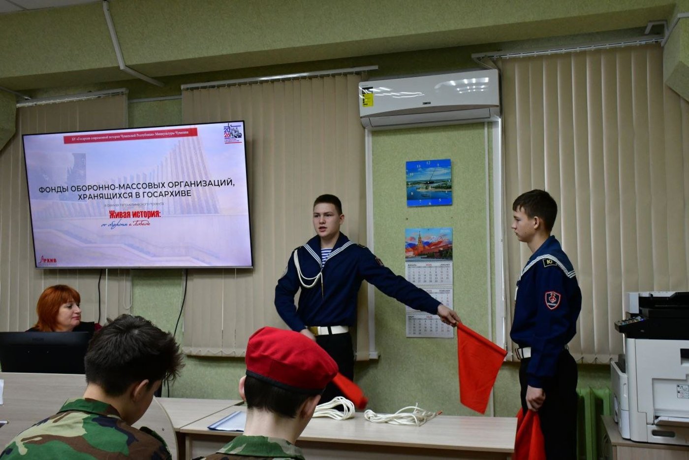26 февраля 2026 г., в Государственном архиве современной истории Чувашской Республики и состоялся старт патриотического проекта «Живая история: от обороны к Победе». На уникальное мероприятие «Фонды оборонно-массовых организаций, хранящиеся в госархиве» пришли ученики 7 «Д» класса МАОУ"СОШ № 1" г. Чебоксары.