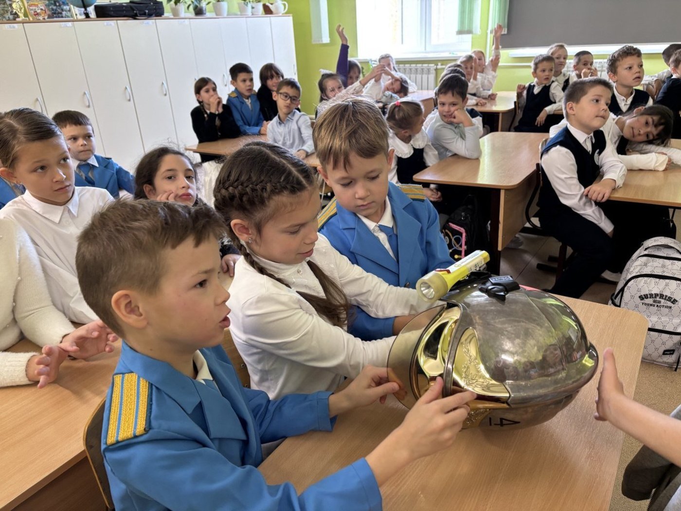 В 3И классе провел урок безопасности Пудов Александр Александрович, помощник начальника караула Пожарно-спасательной части № 4. Он напомнил третьеклассникам о правилах поведения во время пожара, продемонстрировал экипировку пожарного.