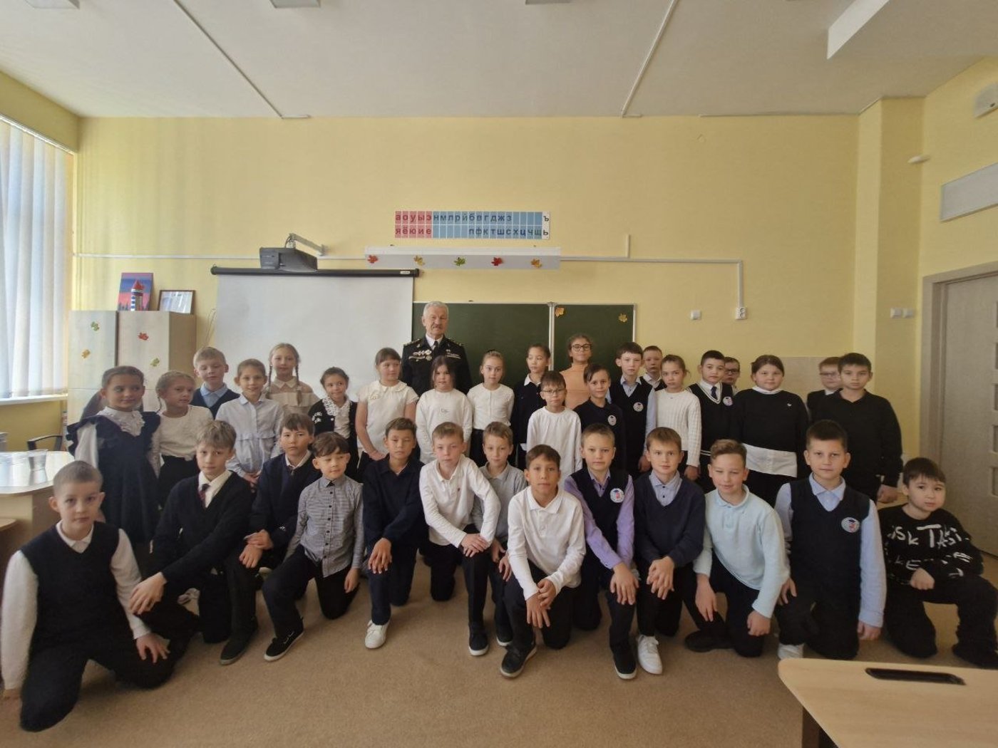 А в 3 "з" и 3Ж классах открытый урок безопасности ГО провел дедушка ученика, заместитель председателя Чувашской республиканской общественной организации ветеранов "Российский Союз ветеранов" Лаврентьев Василий Михайлович. Ребята поблагодарили Василия Михайловича и поздравили его с Днем пожилых людей.