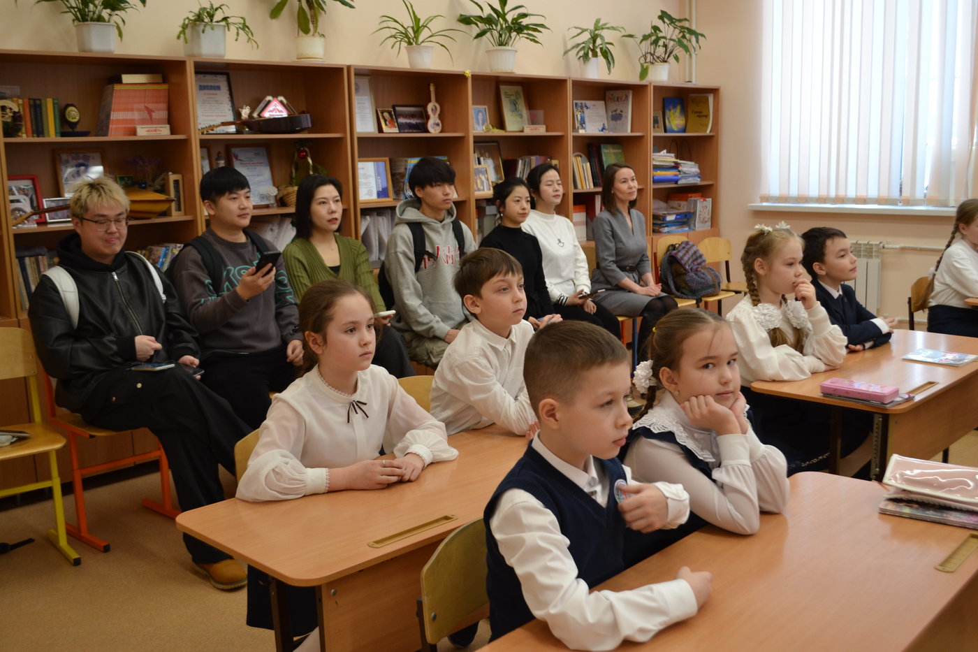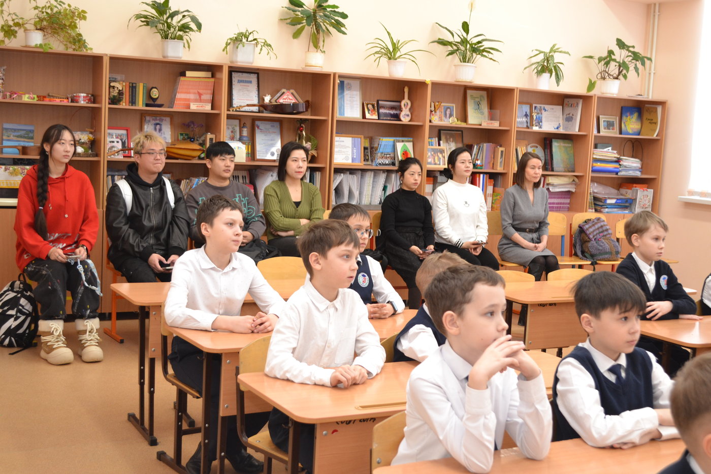 Сегодня в нашей школе побывали гости из Китая. Это будущие учителя музыки, которые учатся в Чувашском государственном педагогическом университете имени И. Я. Яковлева на первом курсе магистратуры. Они проходят практику под руководствам методиста - старшего преподавателя факультета художественного и музыкального образования Виноградовой Марины Тимофеевной и побывали уже в некоторых школах нашего города.