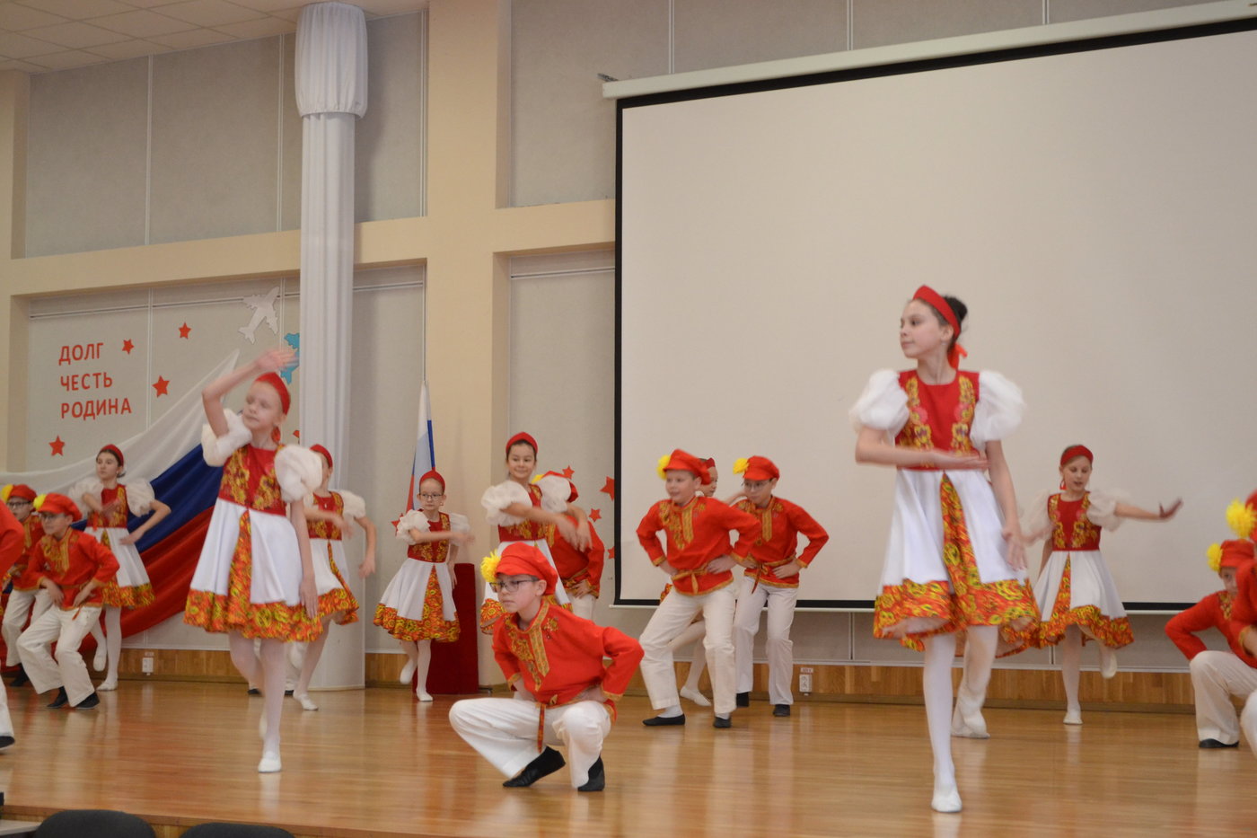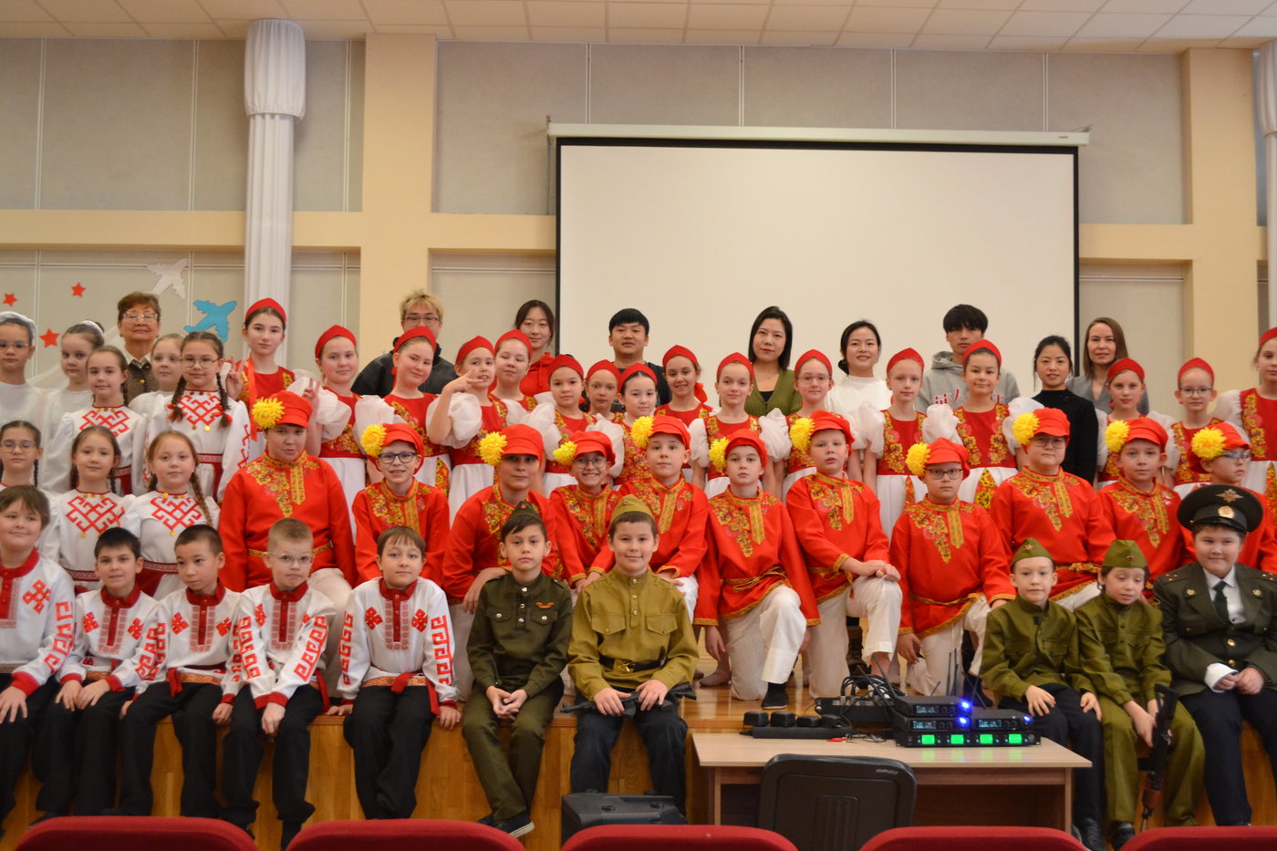 Ученики начальных классов подготовили для гостей концерт, на котором исполнили чувашскую народную песню "Кумаляк", песни военных лет, а так же удивили гостей танцами.