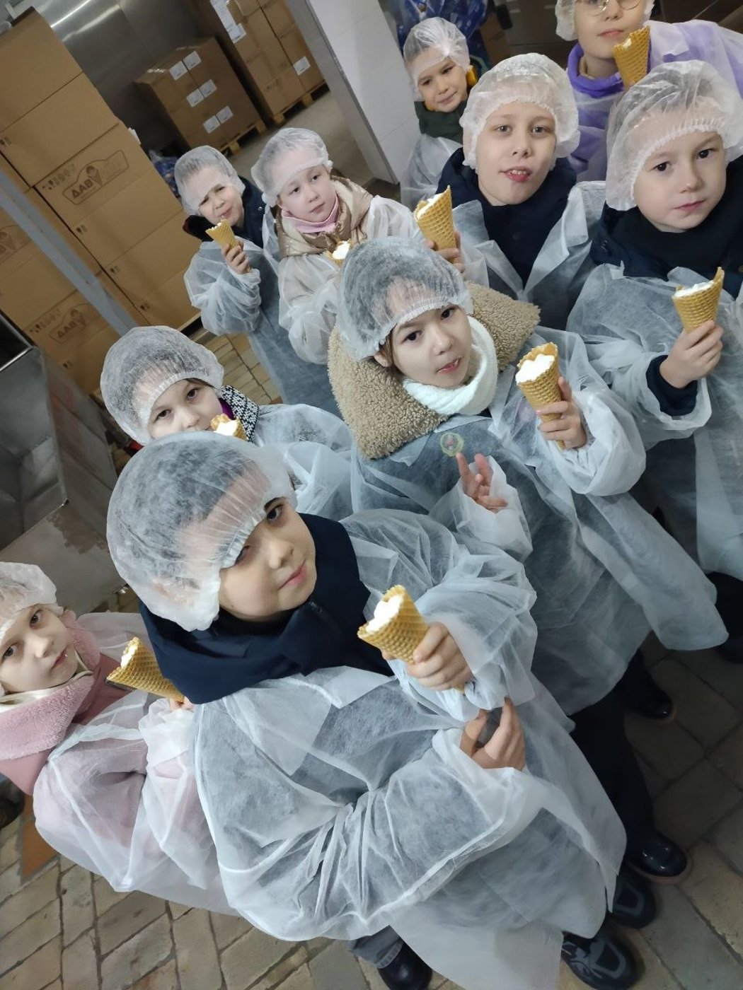 Ребята увлеченно слушали технолога, рассматривали все движения создания холодного лакомства