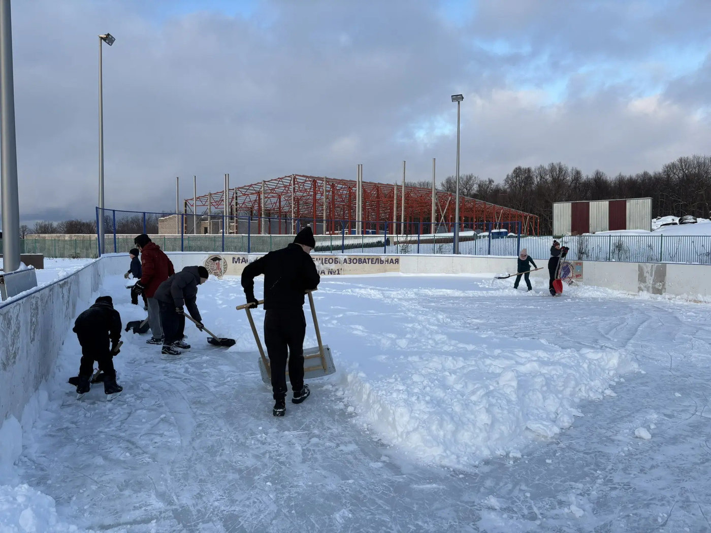 На стадионе СОШ 1 работает каток! После метелей и снегопадов обучающиеся под руководством учителя физической культуры Ивановой Натальи Юрьевны расчистили лед.