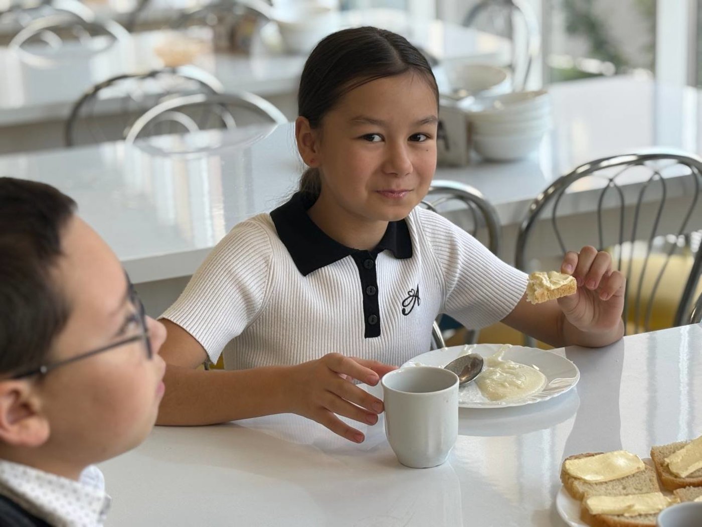 Уплетая за обе щеки вкуснейшую манную кашу, ребята рассказывали о своих вкусовых предпочтениях, поделились успехами и планами в своих школьных делах. Оксана Александровна подробно отвечала на вопросы четвероклассников. Завтрак получился полезный и приятный.