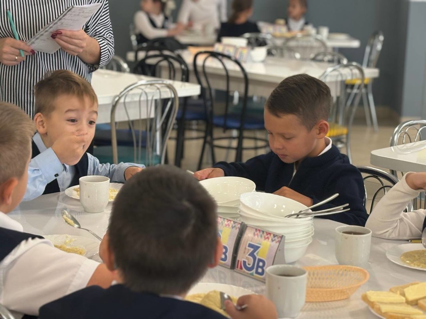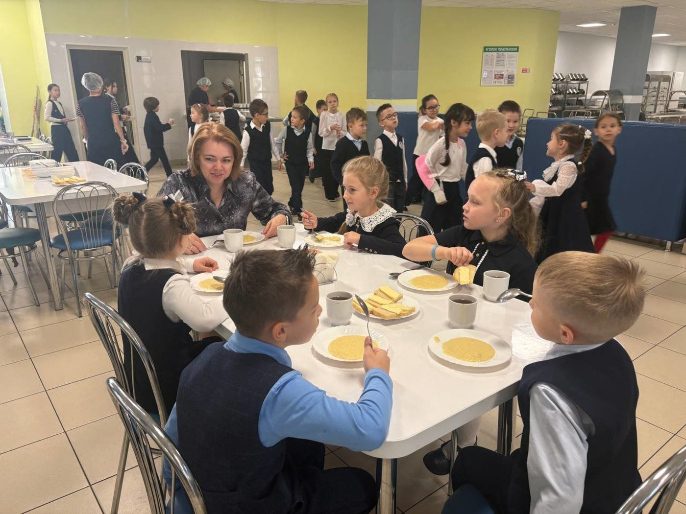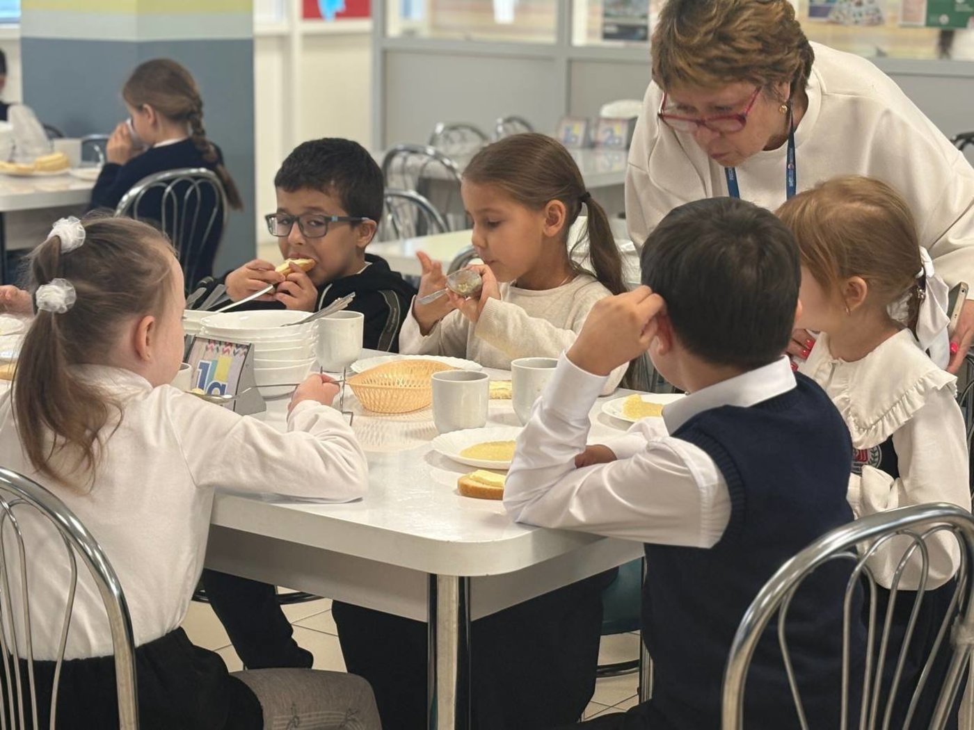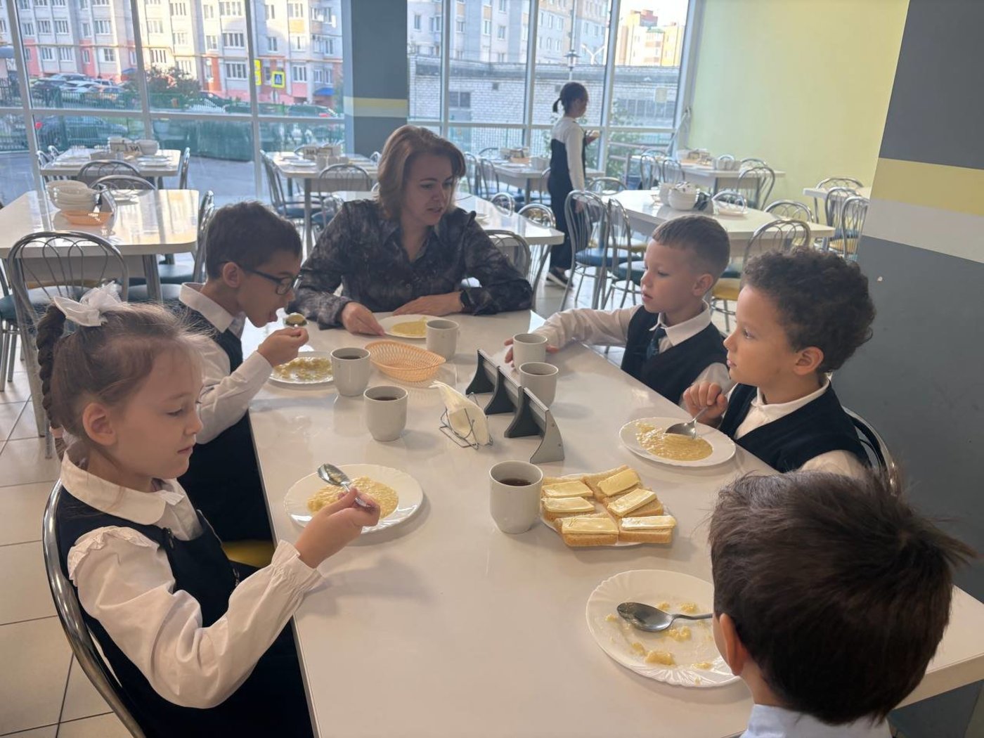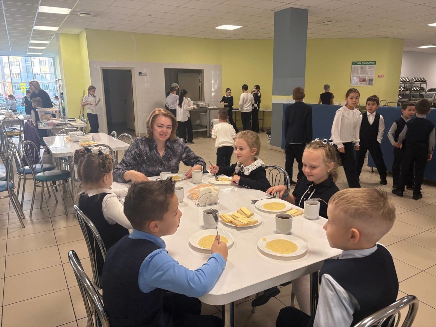 Сегодня первоклассники нашей школы позавтракали вместе с заместителем директора Оксаной Александровной Гущиной.