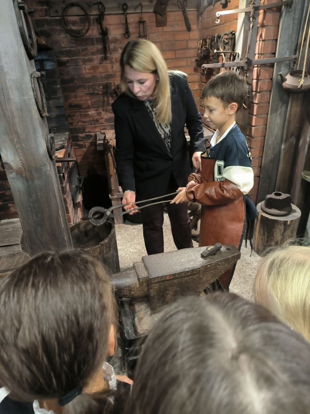 Ребята увидели старинные орудия труда, которыми обрабатывали землю наши предки: соху, косу, серп, топоры. Первые машины с паровыми двигателями, которые начали использовать в железнодорожном, водном транспорте, так и до первых тракторов добрались. Первые колесные тракторы с паровой машиной были родом из Англии и Франции.