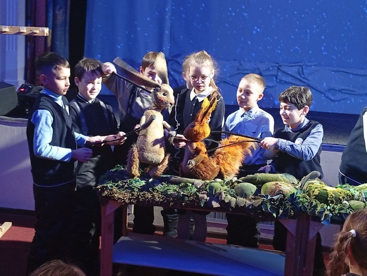 Эта экскурсия погрузила Ребят в волнительную атмосферу прошлого, в историю нашего театра кукол: от рождения в победном сорок пятом до начала XXI столетия, дала возможность прикоснуться к яркому творческому миру великих творцов театрального искусства: режиссеров, художников, драматургов и артистов. Все Ребята в специальных наушниках, которые помогали оживлять историю через звук, эмоции и актерскую игру, стали участниками театрального представления! Все вместе увидели, как рождается сценарий, создаются куклы и театральные реквизиты, побывали на первой репетиции, сами попробовали управлять тростьевыми куклами и посмотрели небольшой отрывок из спектакля «Сказка про ежика, волшебный лес и кое-что еще».