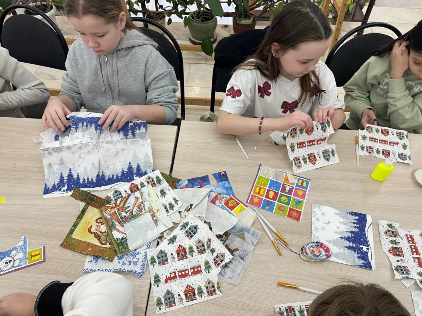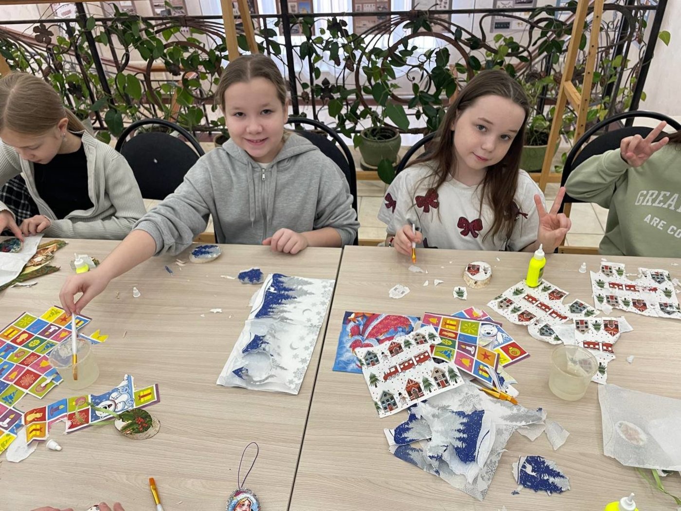 Учащиеся 4И класса (классный руководитель Петрова В.Б.) приняли участие в интересном мероприятии — мастер-классе по изготовлению новогодней игрушки на спиле дерева в технике декупаж. Это занятие стало настоящим праздником творчества и вдохновения для всех участников. Каждый ученик смог проявить свою фантазию и создать уникальную игрушку, украшенную яркими рисунками и узорами. Атмосфера была теплой и дружеской, дети активно обменивались впечатлениями и помогали друг другу.