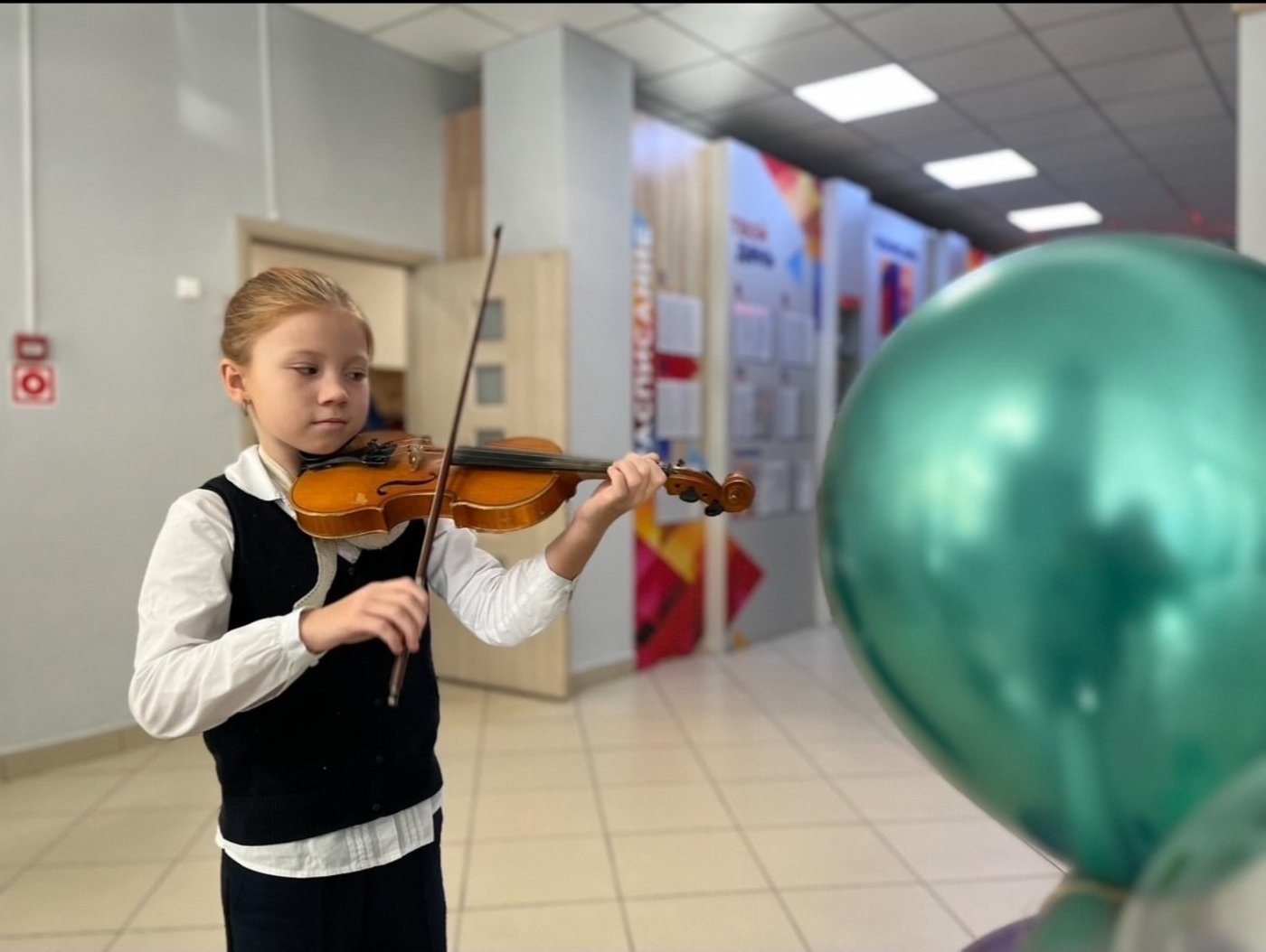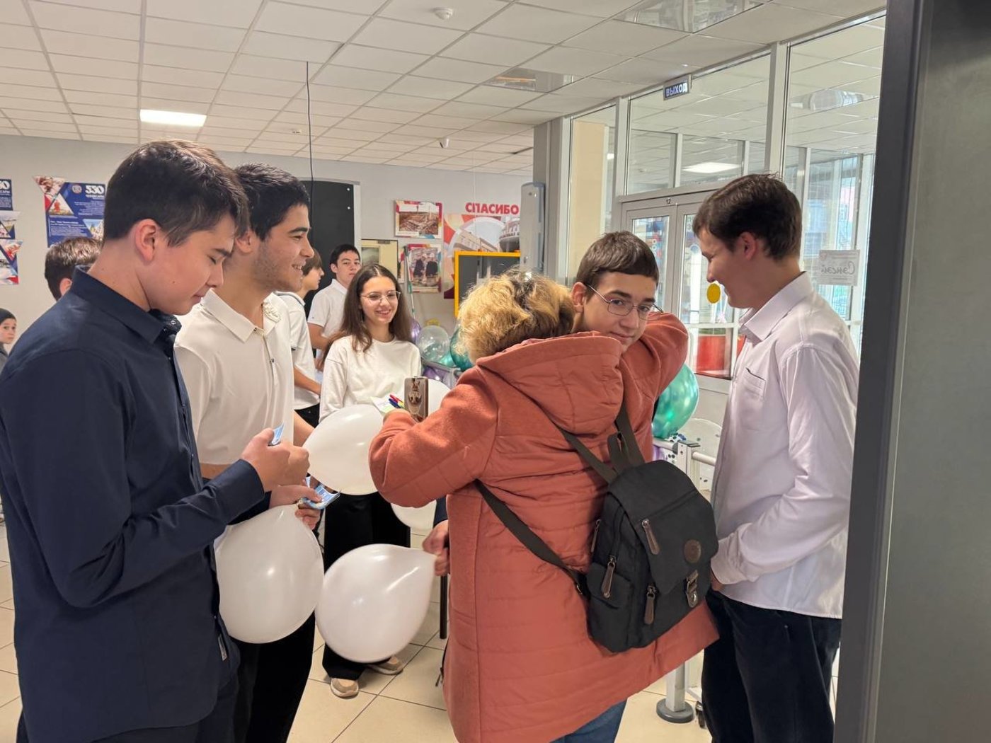 Утром 3 октября наши ребята устроили для учителей приятный сюрприз в холле первого этажа. Активисты встречали педагогов с подарками, воздушными шарами и живой музыкой, исполненной талантливой ученицей 3И класса.