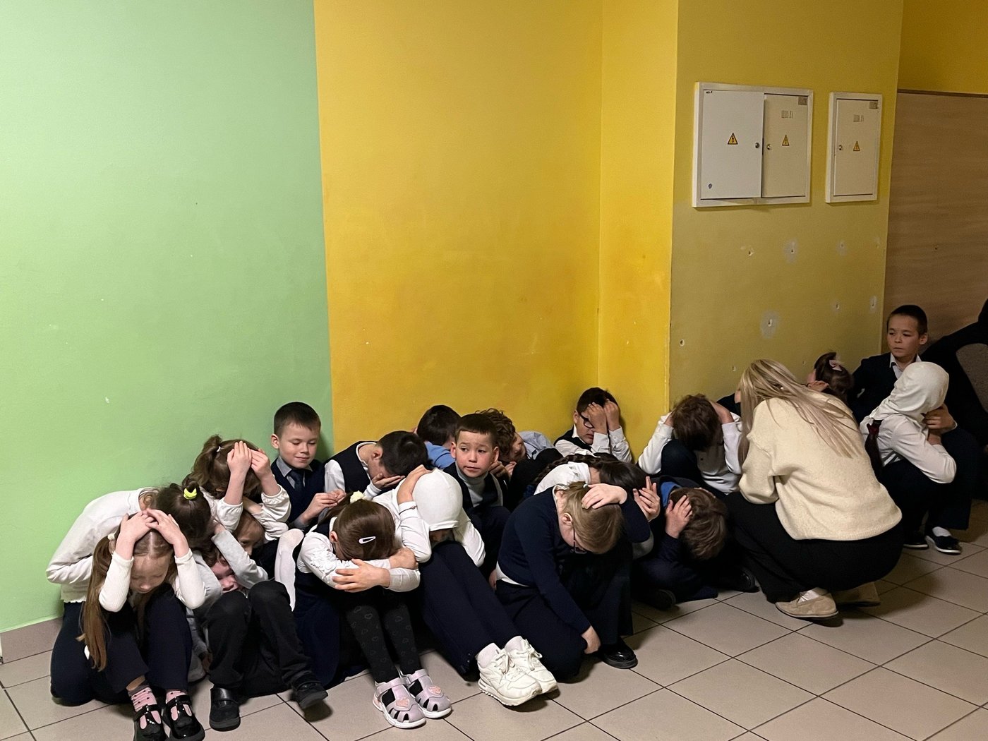 Эвакуация при условной атаке БПЛА, демонстрирующая правильные и быстрые действия в случае воздушной угрозы.