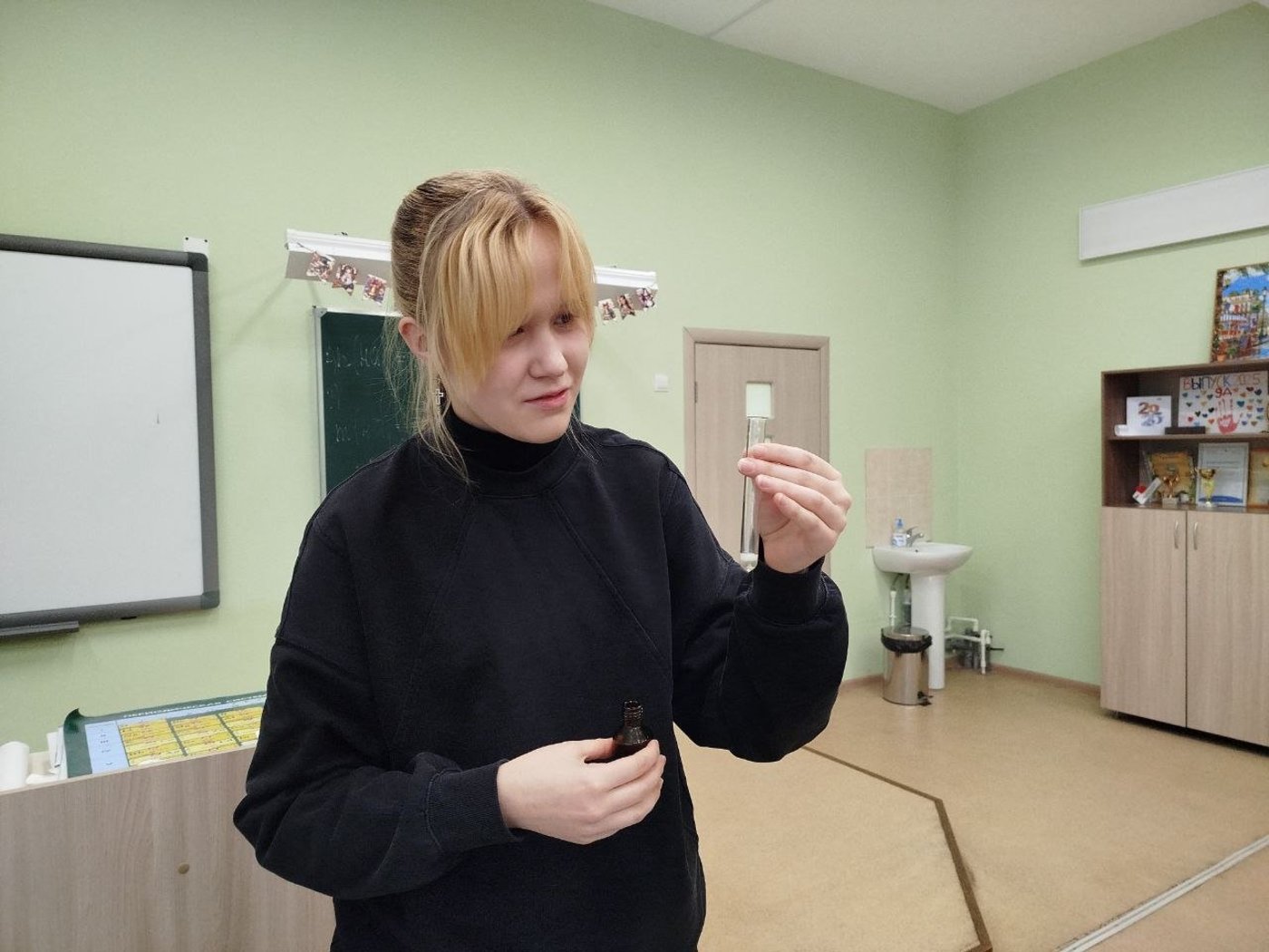 Особое внимание было уделено технике безопасности при работе с химическими веществами. Учитель химии Николаева Л.А. подробно объяснила правила обращения с реактивами и использования лабораторного оборудования.