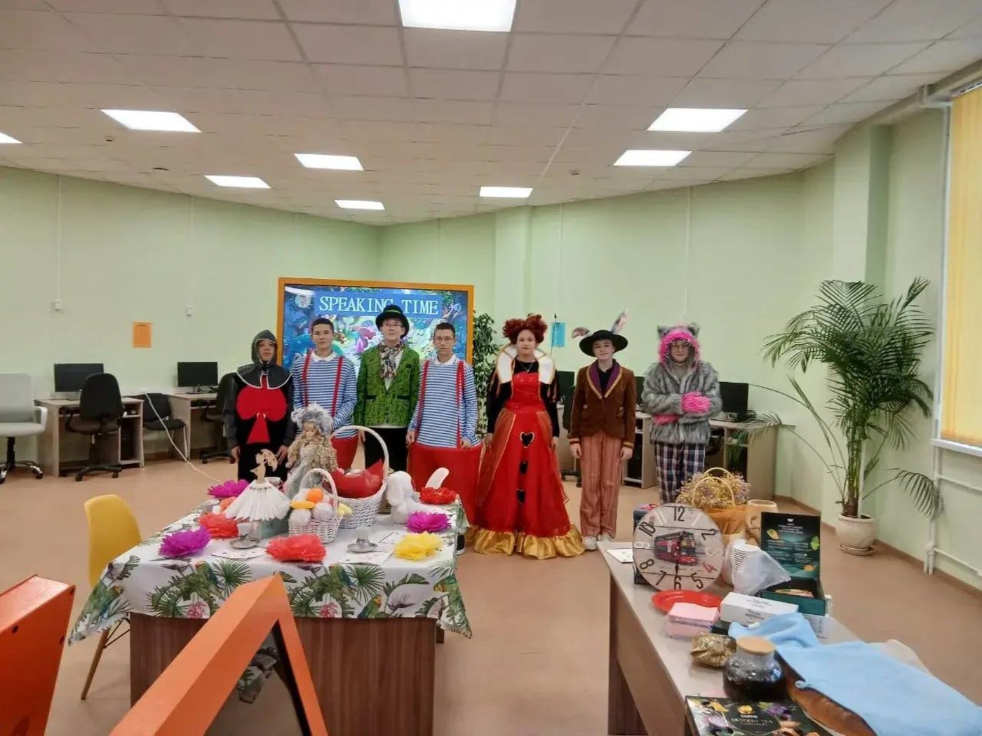 сказочную атмосферу – библиотека была украшена в тематике «Алисы в стране