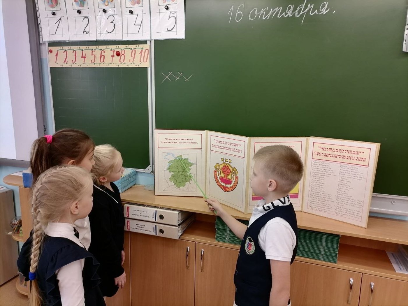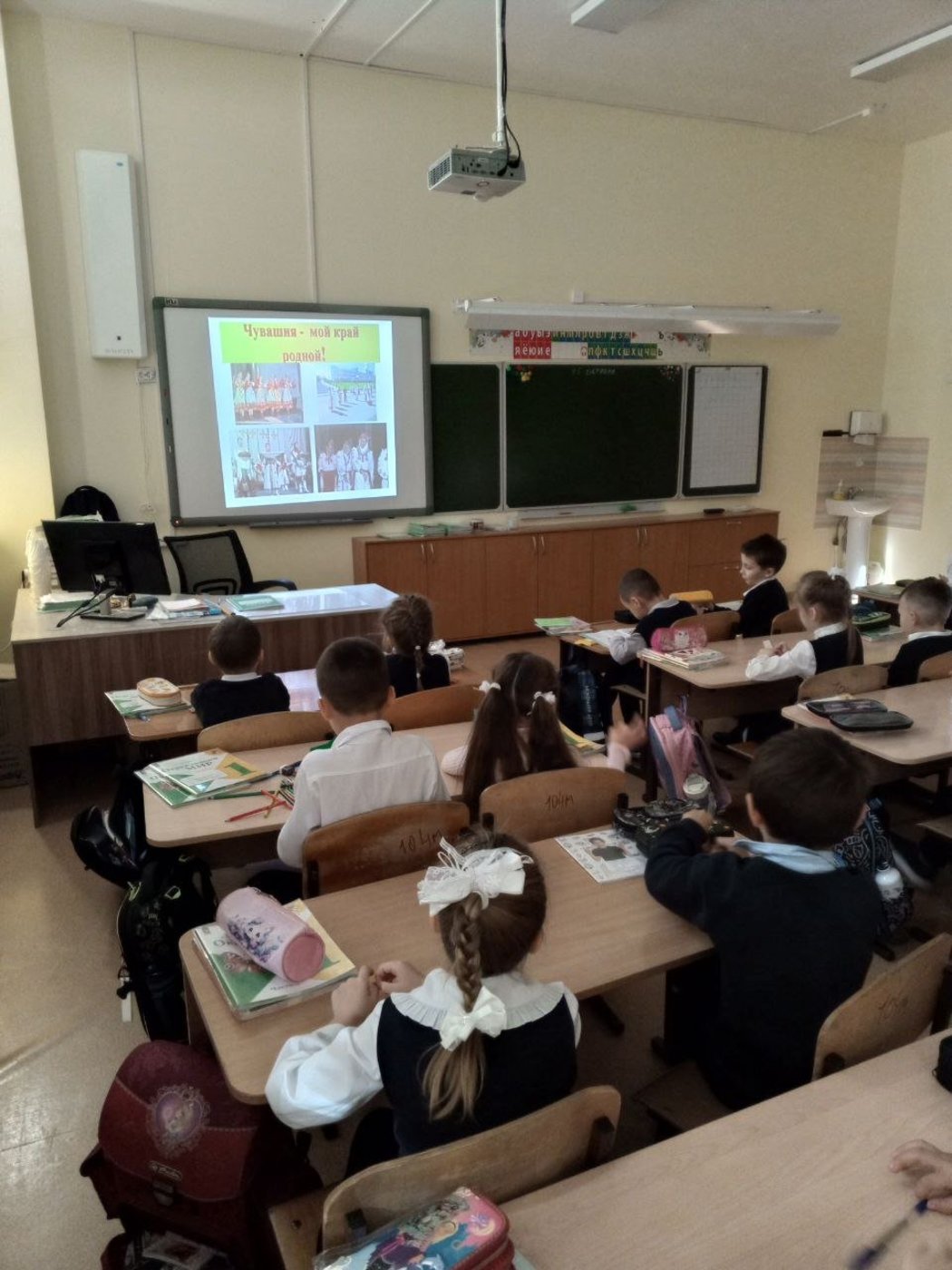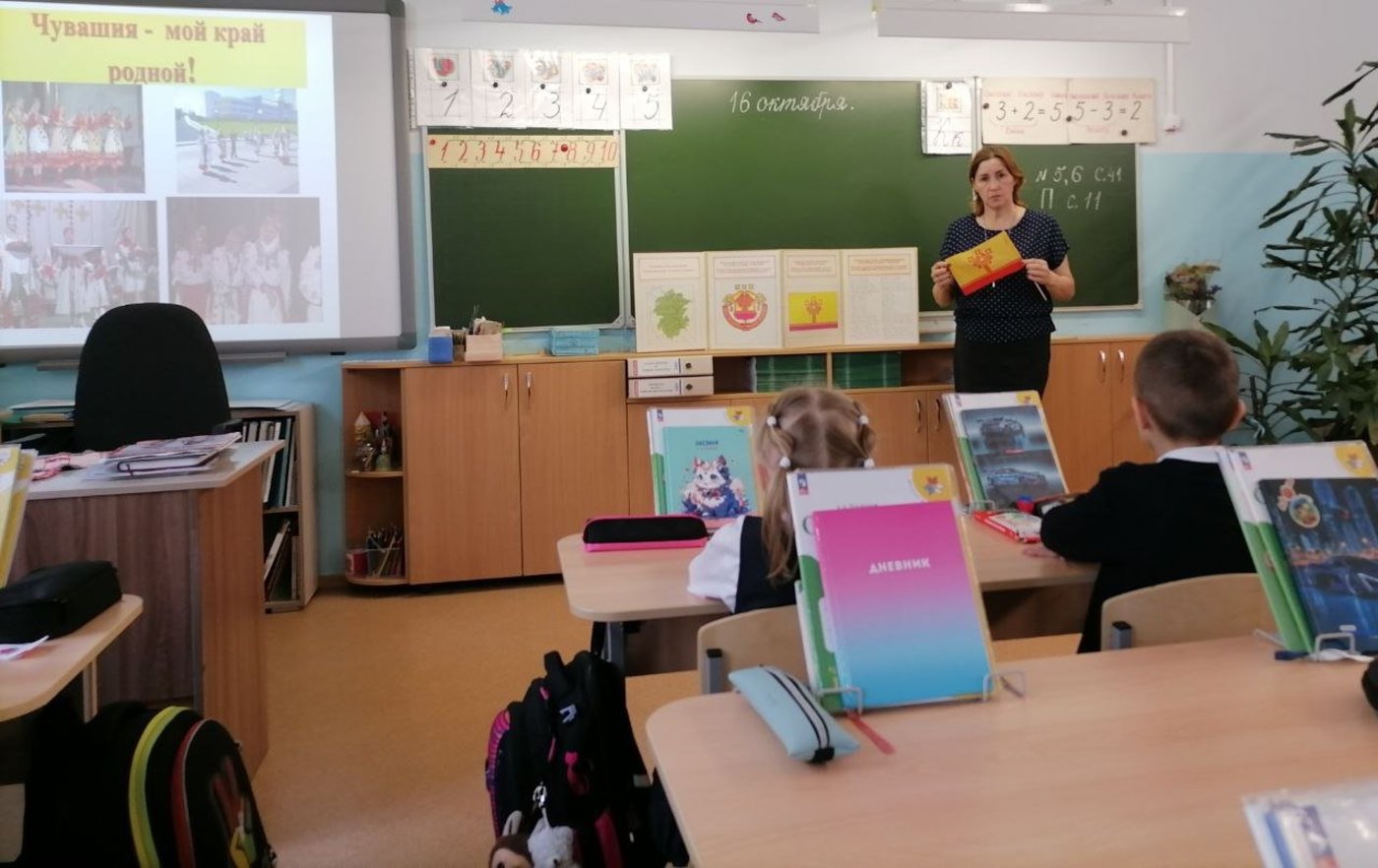 В 1-х классах прошли тематические уроки, на которых ребята повторили информацию о государственной символике Чувашской Республики, познакомились с природными и географическими особенностями нашего региона, с традициями и культурой чувашского народа.