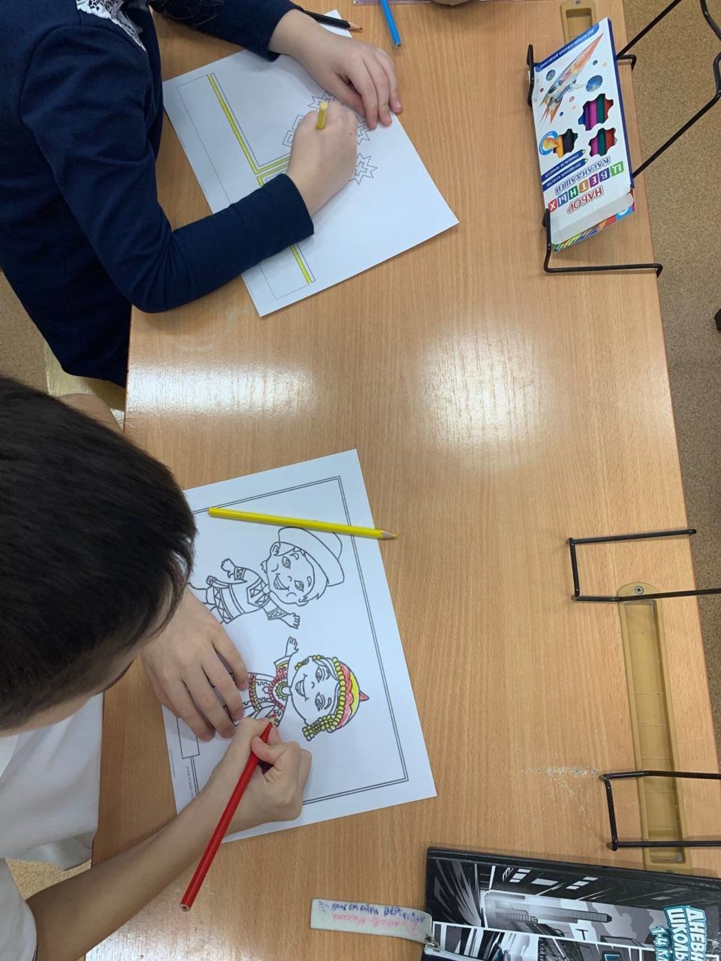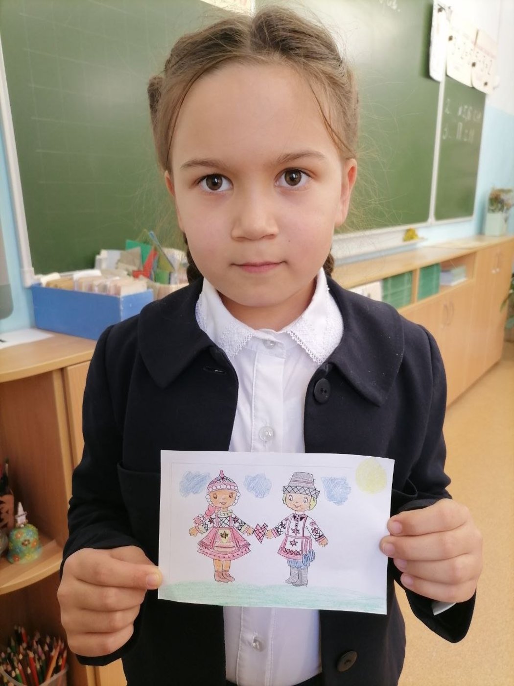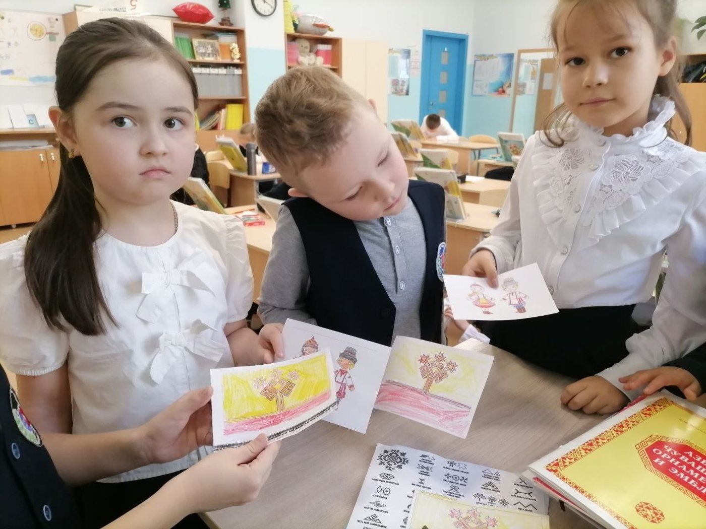 В конце урока первоклассники с удовольствием разукрашивали изображения герба, флага Чувашии, рисовали национальные узоры и костюмы, пели чувашские песни. Было интересно и познавательно!