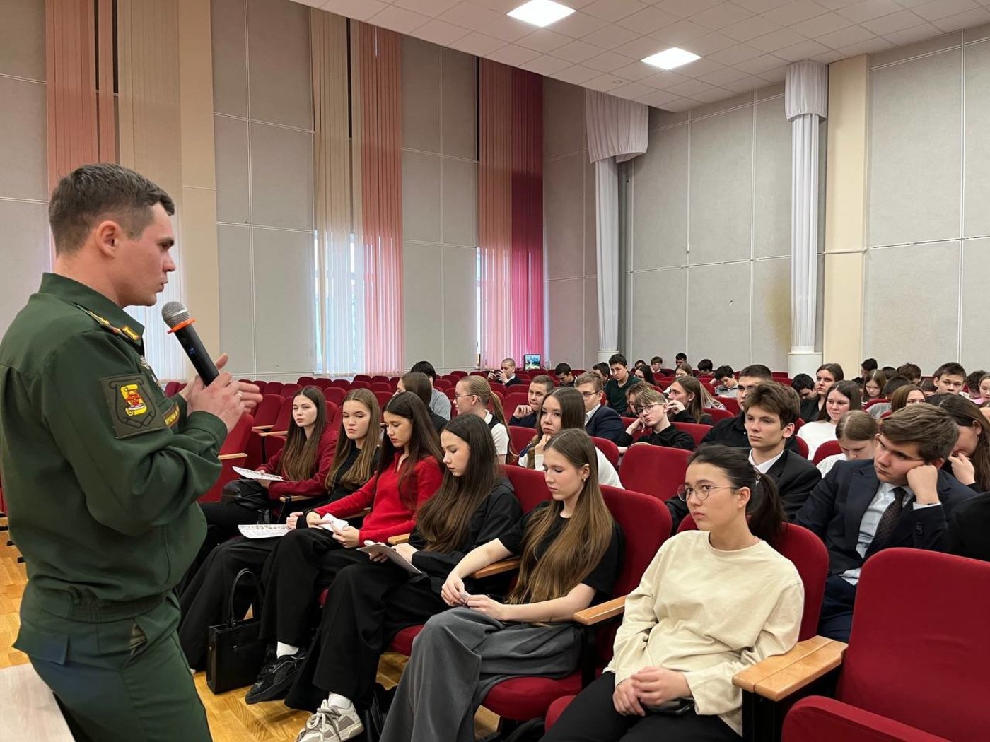 В рамках профориентационной работы в МАОУ "СОШ №1" г. Чебоксары прошла встреча учеников 9-11 классов с представителями Военной академия РХБ защиты им. Маршала Советского Союза С.К Тимошенко (г.Кострома) и Саратовского высшего Военного инженерного училища РХБ защиты.