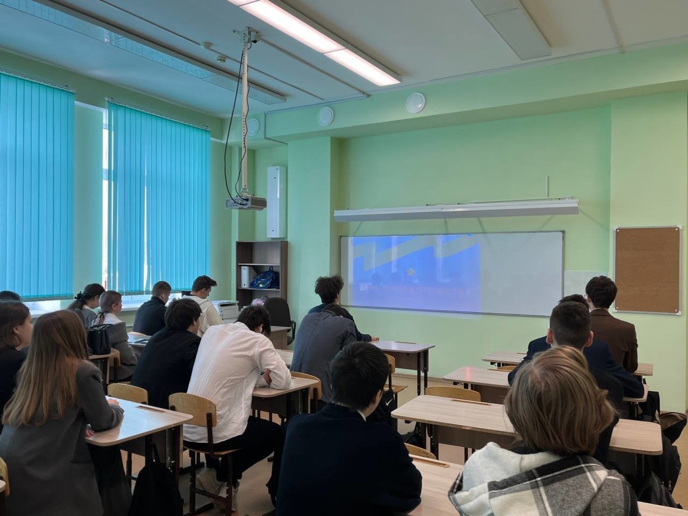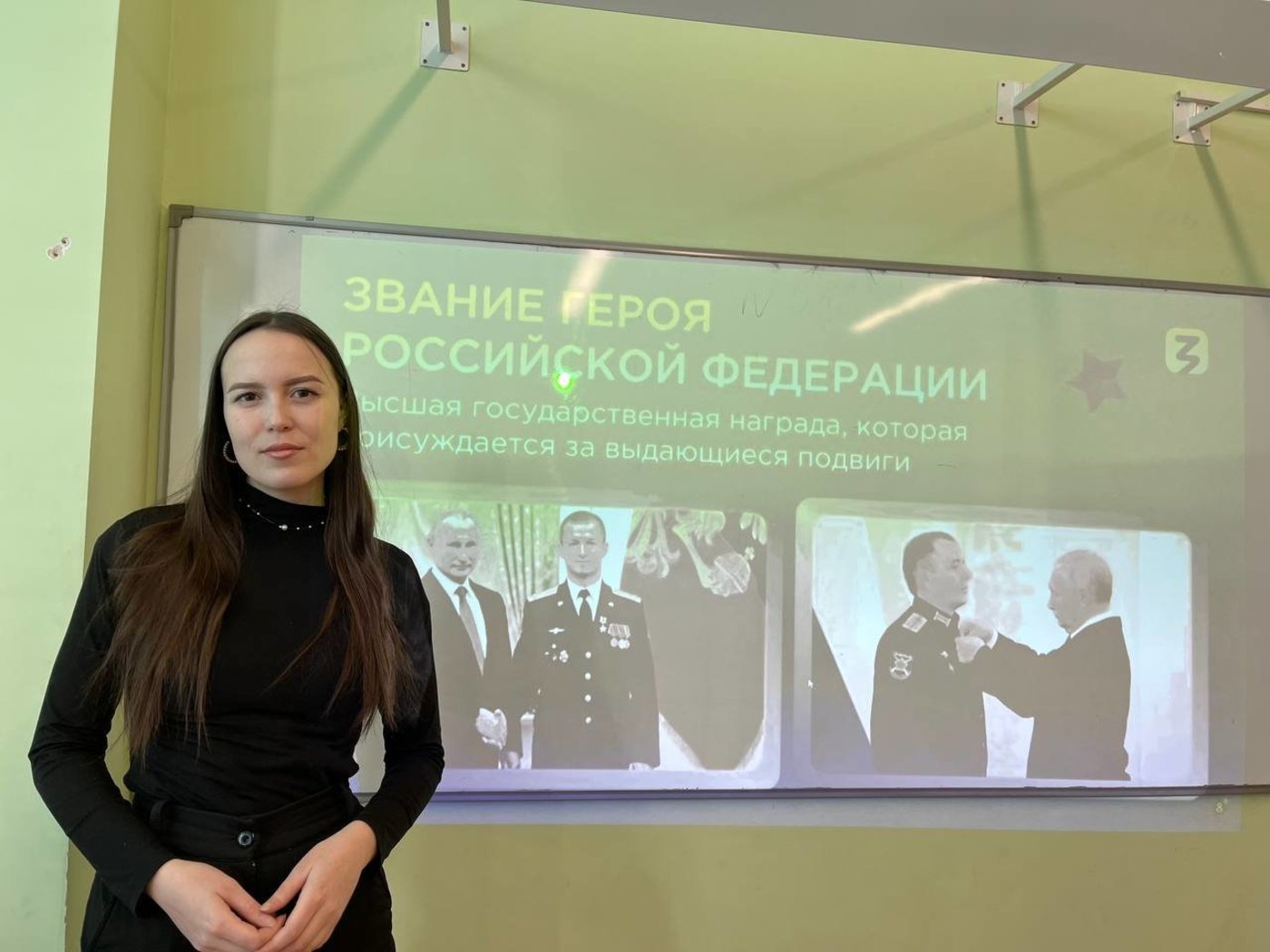 В преддверии Дня защитника Отечества в нашей школе для учащихся 10-х классов советником директора по воспитанию была проведена увлекательная лекция «Кто такие герои?» при поддержке Общероссийской общественно‑государственной просветительской организации «Российское общество „Знание“».