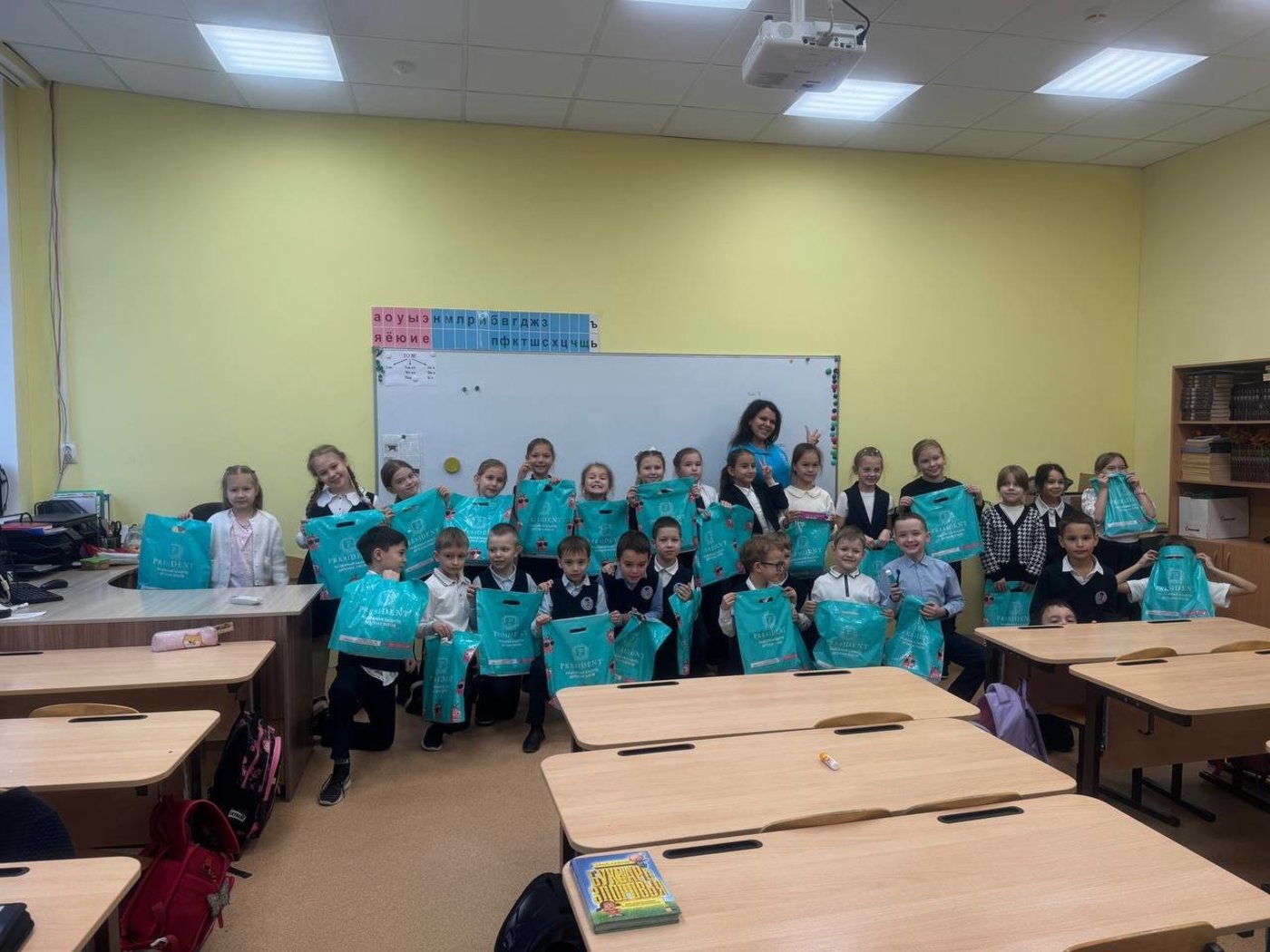 Ребята получили в подарок зубную пасту, щетку, книжку-раскраску и наклейки.