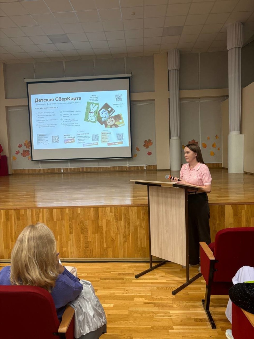 В преддверии Недели финансовой грамотности перед родителями выступили представители ПАО Сбербанк, они рассказали как защититься от мошенничества взрослым и особенно детям, которые все чаще стали попадаться на уловки мошенников. Была представлена детская банковская карта, ее преимущества и гарантии безопасности.