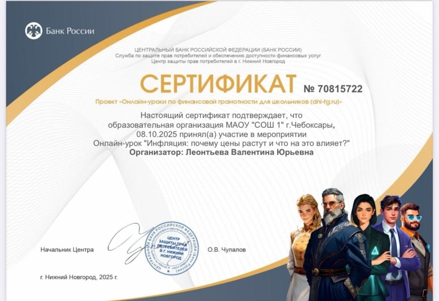 8 октября 2025 года с обучающимися 8А класса был проведен онлайн - урок по финансовой грамотности Банка России на тему: «Инфляция: почему цены растут и что на это влияет?» Структура урока включала три основных блока: