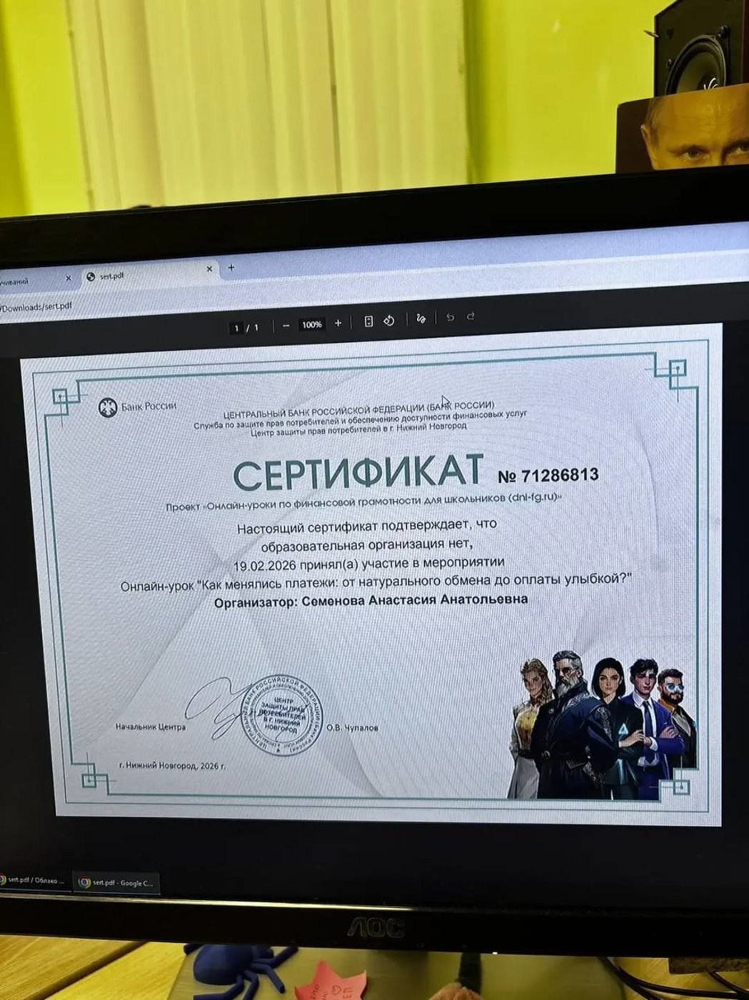 Они посмотрели урок "С деньгами на "ты" или секрет финансовой грамотности", выполнили все практические задания и получили сертификат.