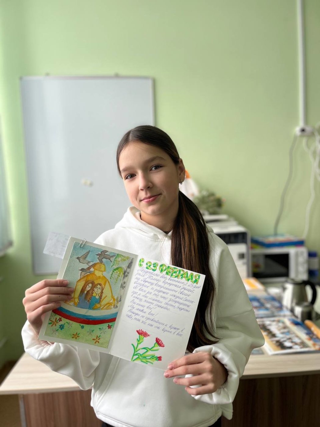 В письмах звучали не только поздравления с наступающим праздником, но и слова поддержки, пожелания здоровья, стойкости и, конечно же, победы. Дети делились своими мечтами о мирном будущем, которое защищают наши герои.