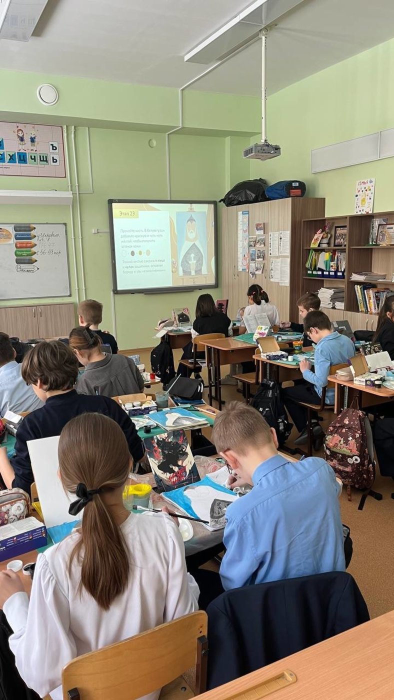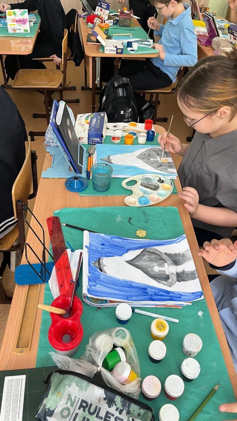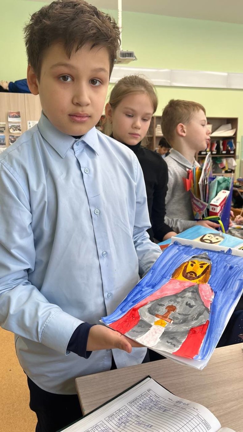 А ребята из 4Б класса нарисовали открытки с изображением русских богатырей. Ведь с древних времен русские солдаты стоят на страже нашей Родины, охраняя ее от нашествий завоевателей.